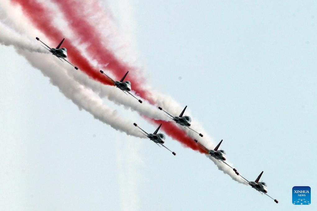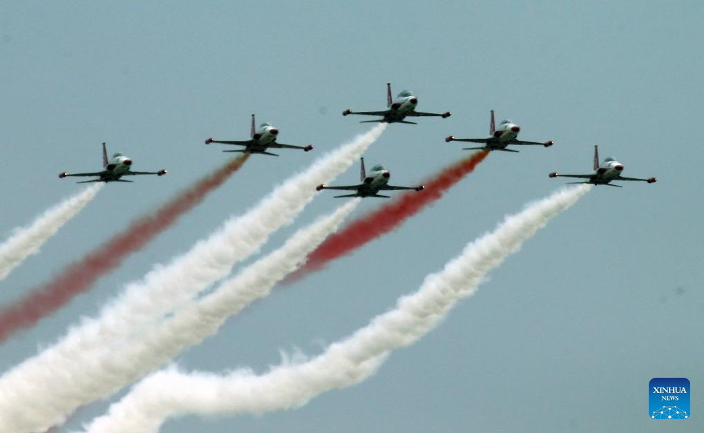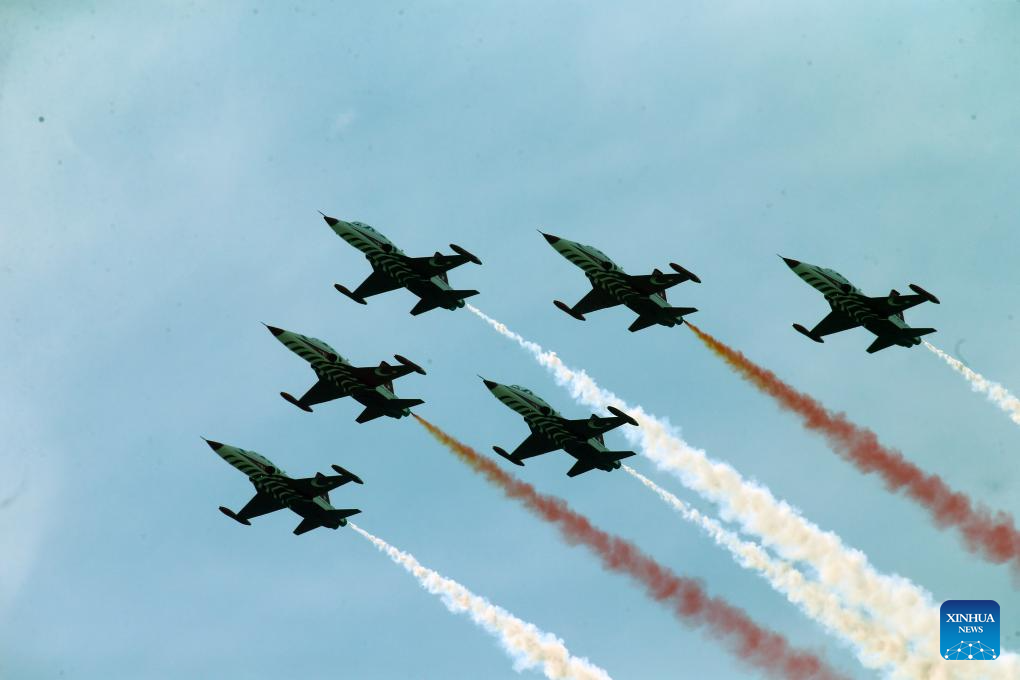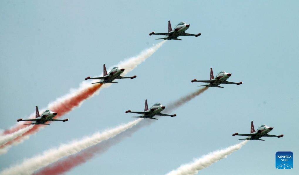 Turkish Stars, the aerobatic demonstration team of the Turkish Air Force, performs during an air show at Türkiye's aerospace and technology festival TEKNOFEST in Ankara, Türkiye on Sept. 2, 2023. (Mustafa Kaya/Handout via Xinhua)