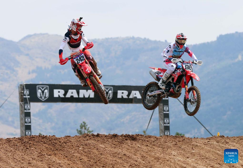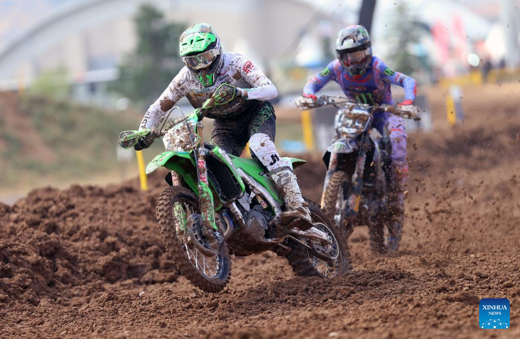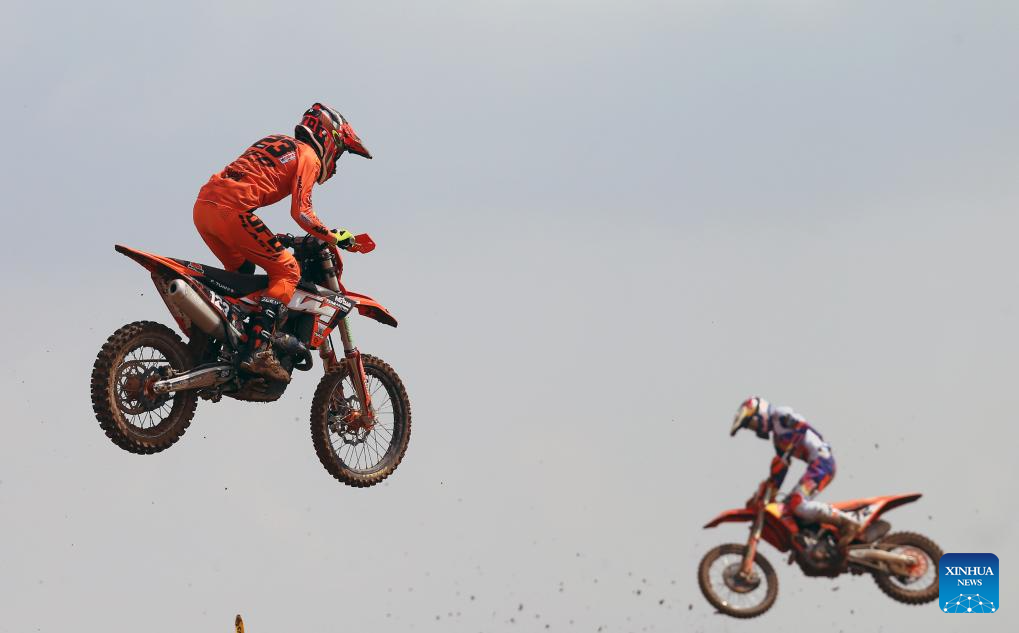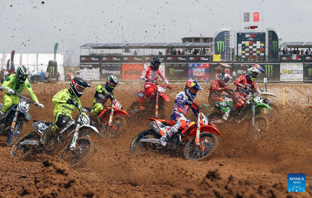 Racers compete during the MXGP race at the FIM Motocross World Championship in Afyonkarahisar, Türkiye, Sept. 3, 2023. (Photo by Mustafa Kaya/Xinhua)