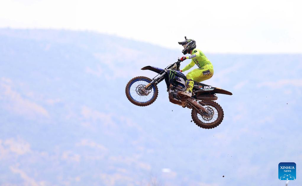 A racer competes during the MXGP race at the FIM Motocross World Championship in Afyonkarahisar, Türkiye, Sept. 3, 2023. (Photo by Mustafa Kaya/Xinhua)