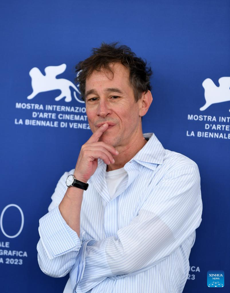Director Bertrand Bonello attends a photocall for the film "La bete" during the 80th Venice International Film Festival in Venice, Italy, Sept. 3, 2023. (Xinhua/Jin Mamengni)