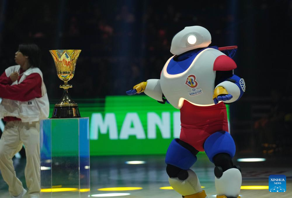 This photo shows the performance before the quarterfinal between Lithuania and Serbia at the 2023 FIBA World Cup in Manila, the Philippines, Sept. 5, 2023. (Xinhua/Meng Yongmin)