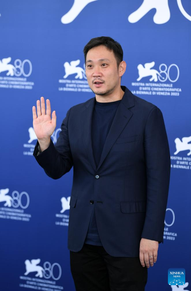 Director Ryusuke Hamaguchi attends a photocall for the film "Evil Does Not Exist" during the 80th Venice International Film Festival in Venice, Italy, on Sept. 4, 2023. (Xinhua/Jin Mamengni)