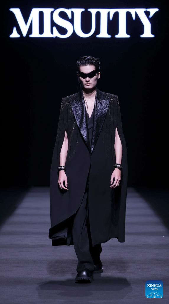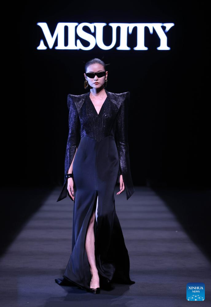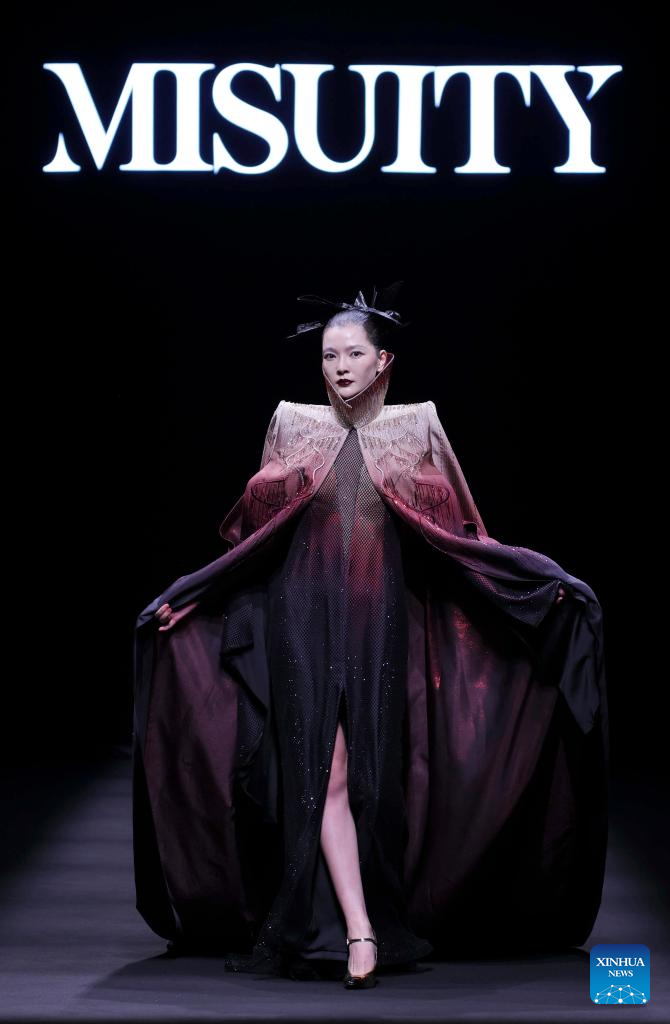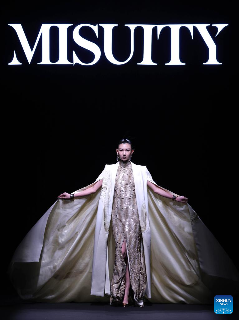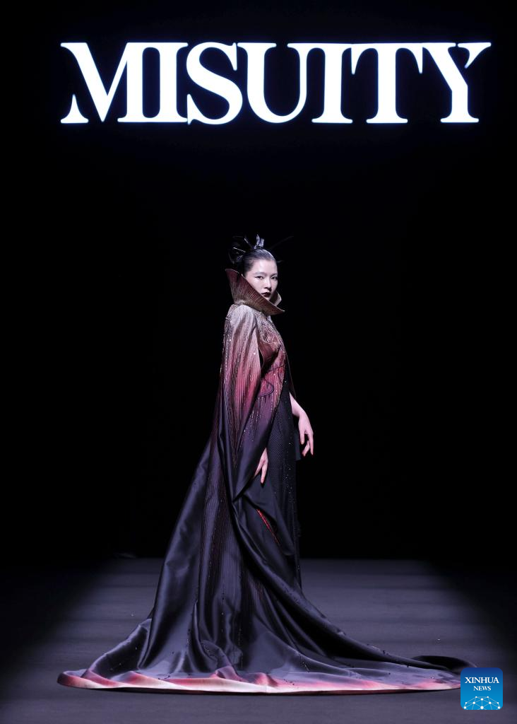A model presents a creation of Misuity at an opening fashion show of China Fashion Week S/S 2024 in Beijing, capital of China, Sept. 7, 2023. The China Fashion Week S/S 2024 kicks off on Thursday in Beijing. (Xinhua/Cai Yang)