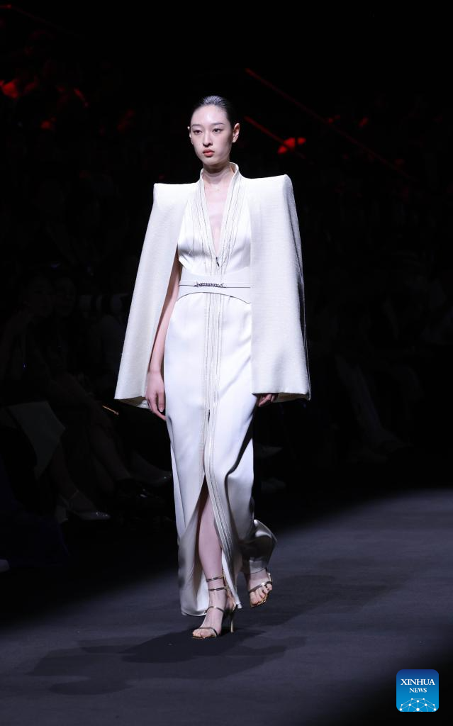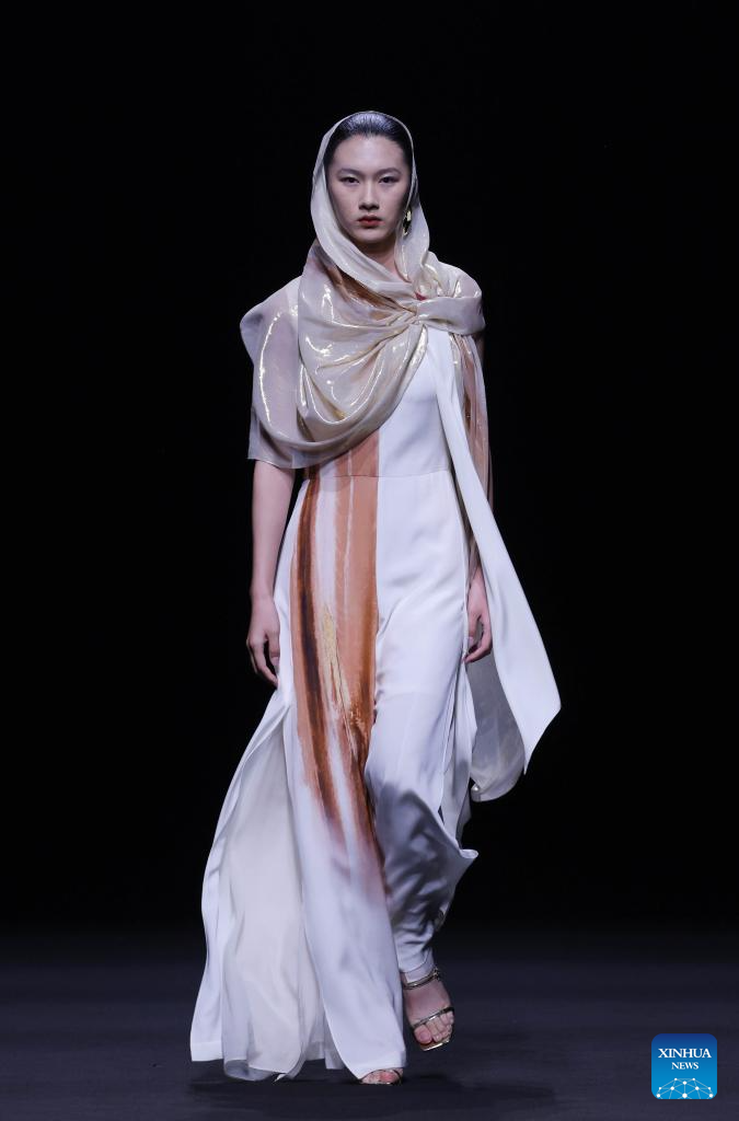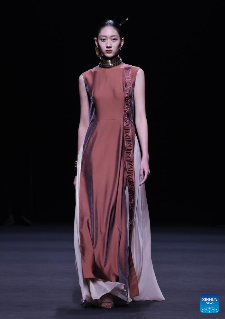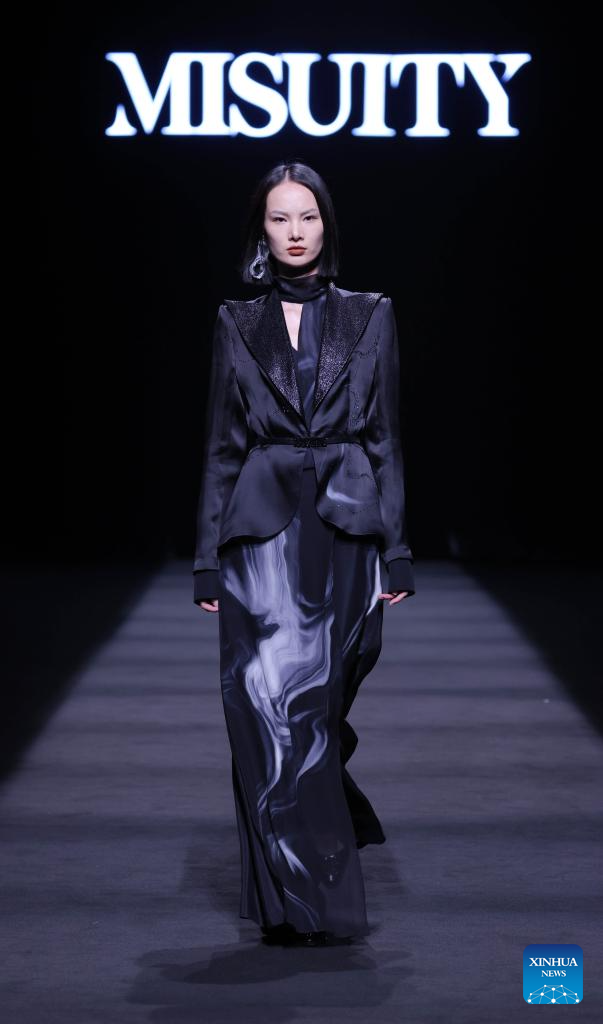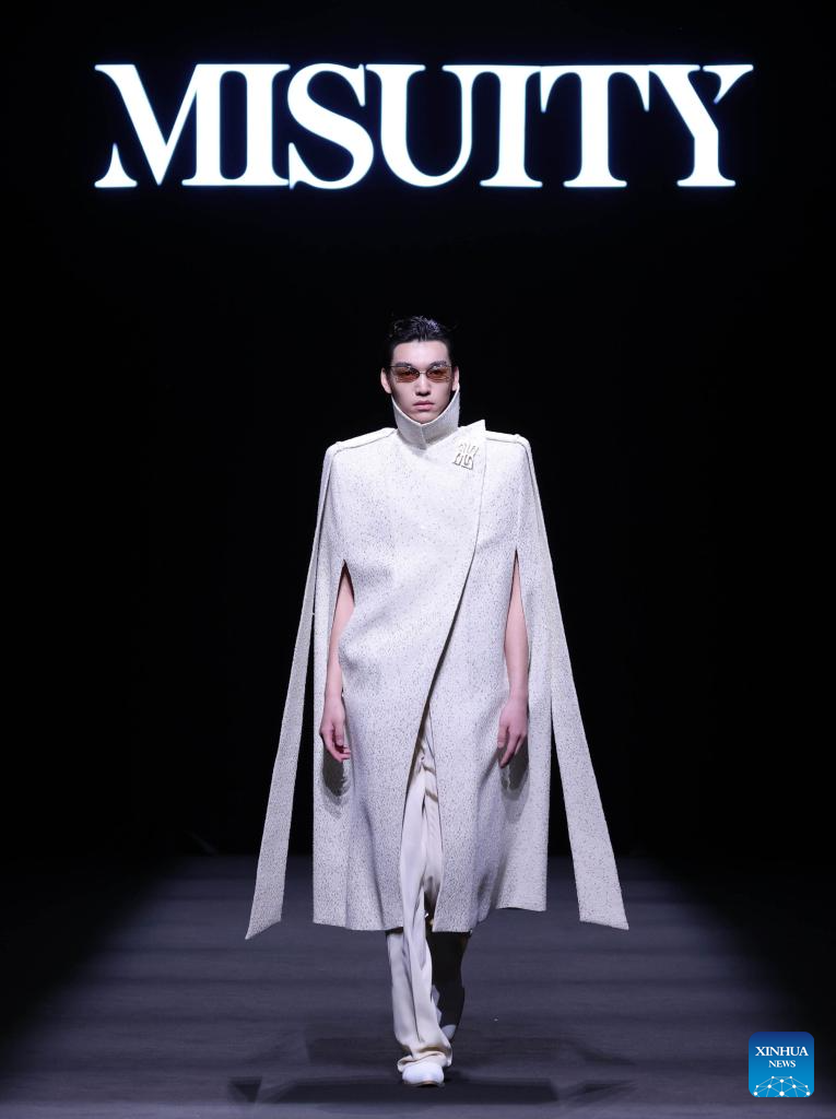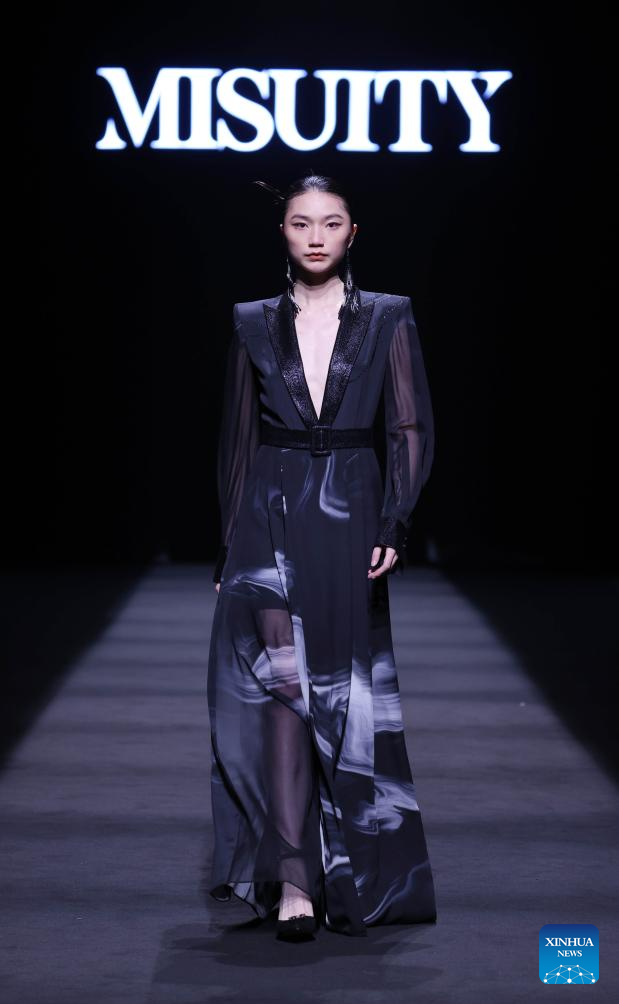 A model presents a creation of Misuity at an opening fashion show of China Fashion Week S/S 2024 in Beijing, capital of China, Sept. 7, 2023. The China Fashion Week S/S 2024 kicks off on Thursday in Beijing. (Xinhua/Cai Yang)