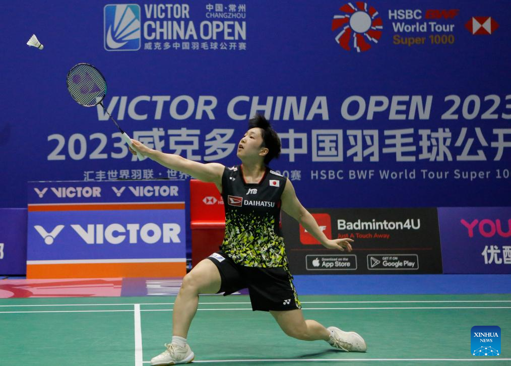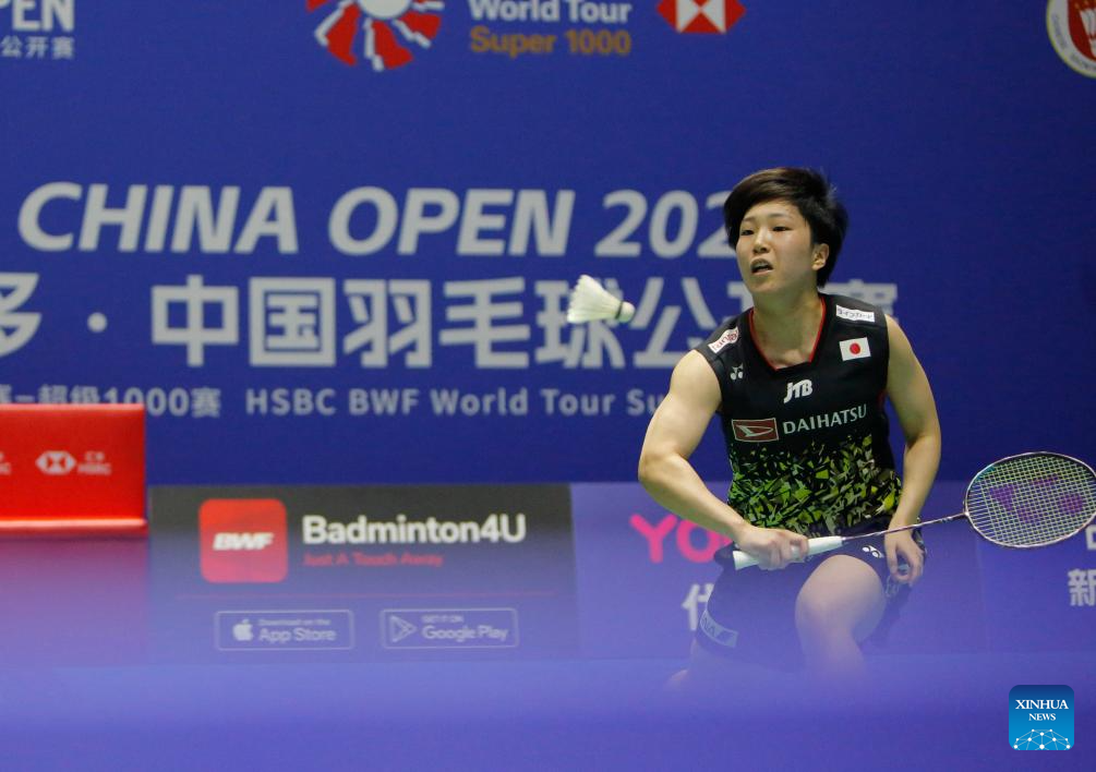 Yamaguchi Akane of Japan competes during the women's singles second round match against Kim Ga Eun of South Korea at the 2023 China Open badminton tournament in Changzhou, east China's Jiangsu Province, Sept. 7, 2023. (Xinhua/Liu Wenhui)