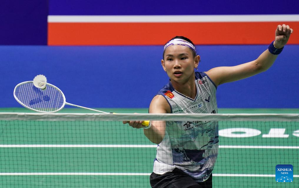 Tai Tzu Ying of Chinese Taipei hits a return during the women's singles second round match against Zhang Yiman of China at the 2023 China Open badminton tournament in Changzhou, east China's Jiangsu Province, Sept. 7, 2023. (Xinhua/Yang Lei)