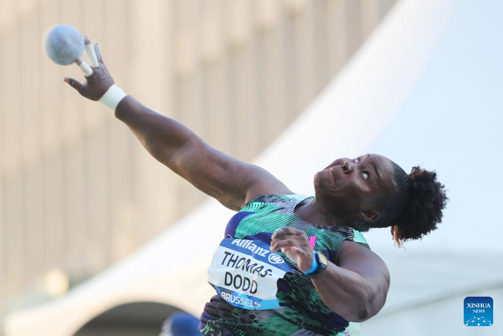 Danniel Thomas-Dodd of Jamaica competes during the Women's Shot Put final at the 2023 Diamond League meeting in Brussels, Belgium, Sept. 7, 2023. (Xinhua/Zheng Huansong)
