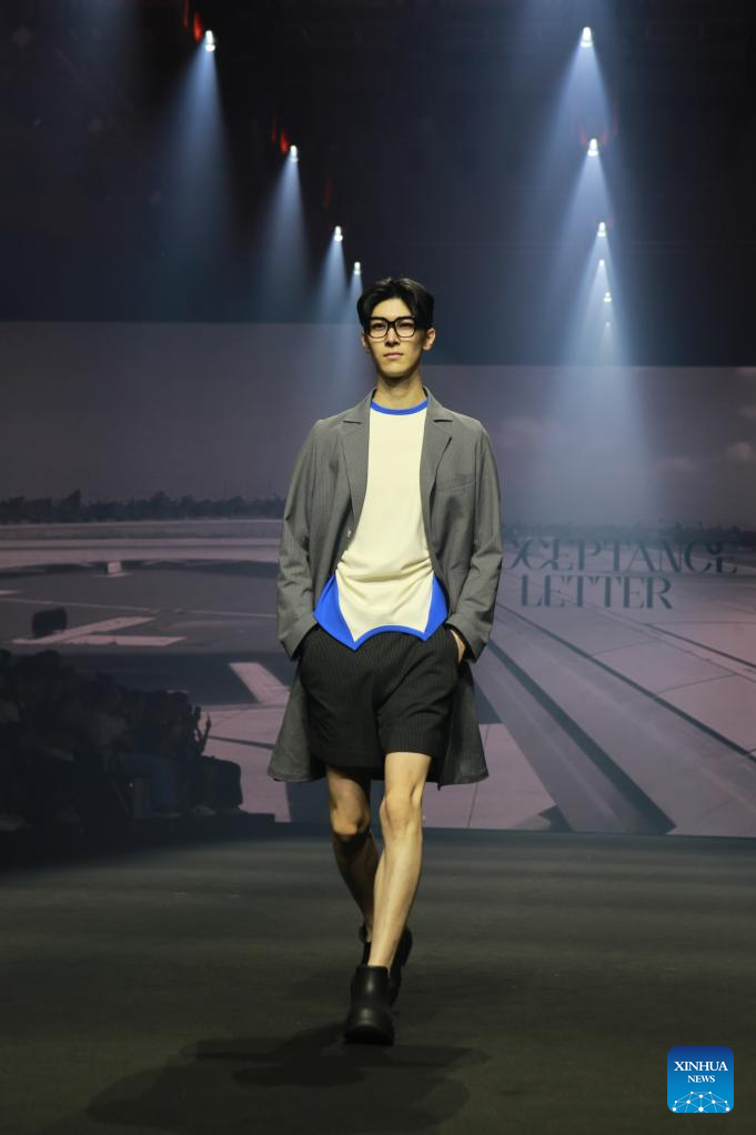 A model presents a creation at the 2024 Spring/Summer Seoul Fashion Week in Seoul, South Korea, Sept. 8, 2023. (Photo by Yang Chang/Xinhua)