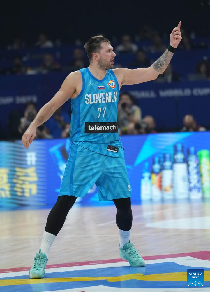 Slovenia's Luka Doncic reacts during the Classification Games 7-8 between Italy and Slovenia at the 2023 FIBA World Cup in Manila, the Philippines, Sept. 9, 2023. (Xinhua/Meng Yongmin)