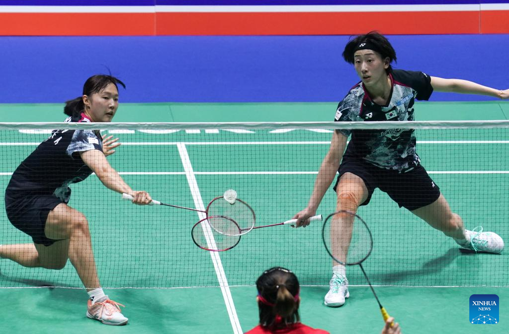 Baek Ha Na/Lee So Hee (R) of South Korea compete during the women's doubles final between Chen Qingchen/Jia Yifan of China and Baek Ha Na/Lee So Hee of South Korea at the 2023 China Open badminton tournament in Changzhou, east China's Jiangsu Province, Sept. 10, 2023. (Xinhua/Yang Lei)
