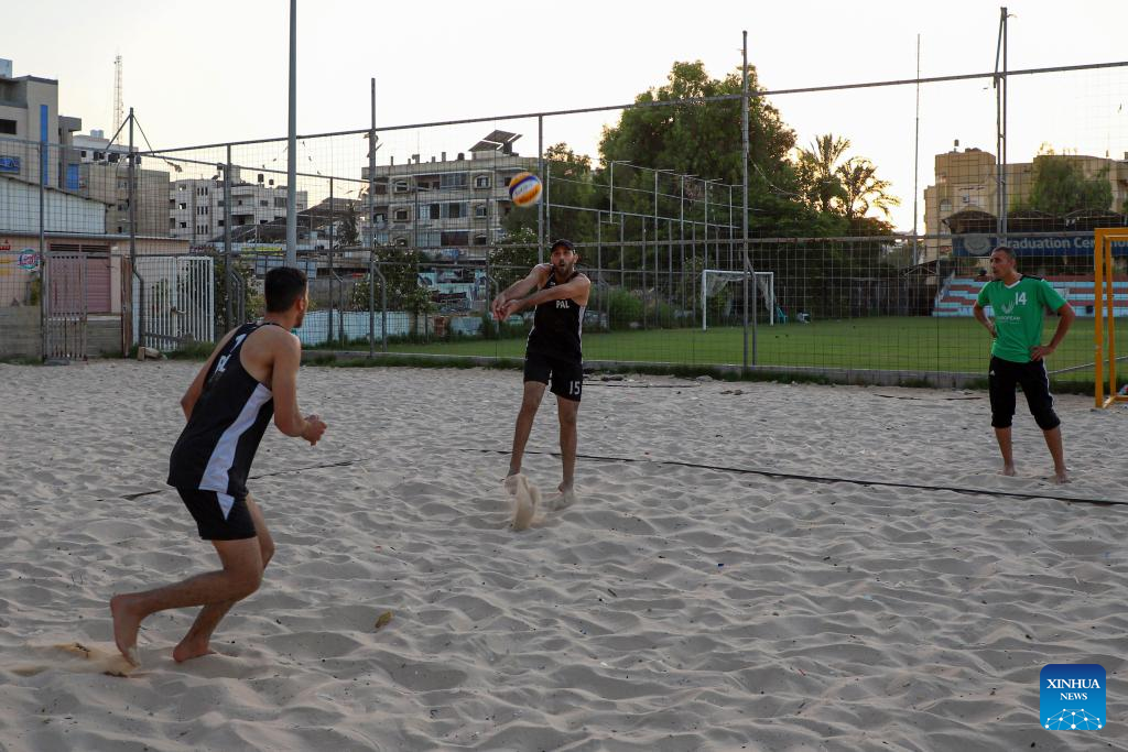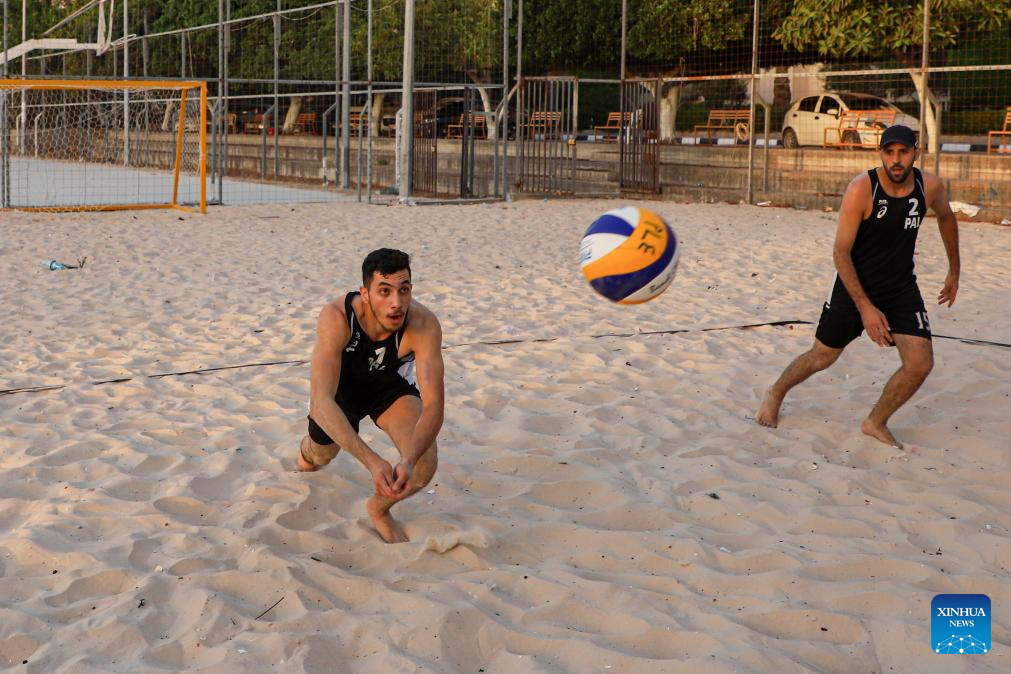 GAZA, Sept. 10 (Xinhua) -- Racing against time, a five-member beach volleyball team from Gaza has been busy training for the 19th Asian Games in Hangzhou.