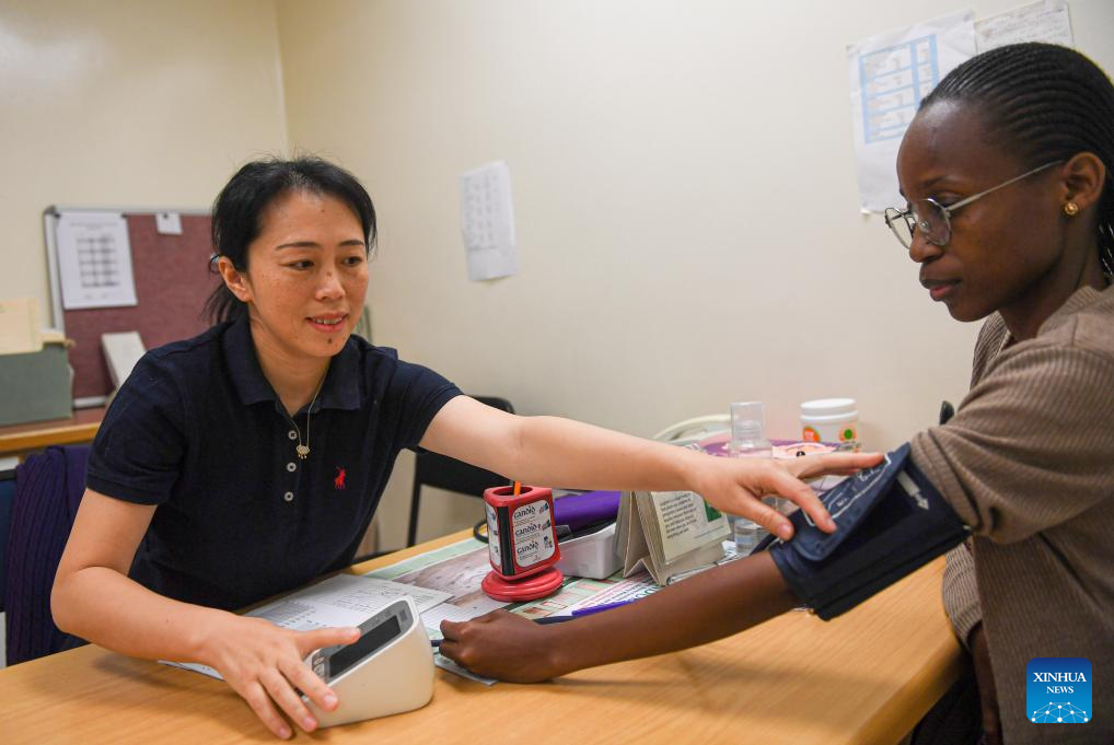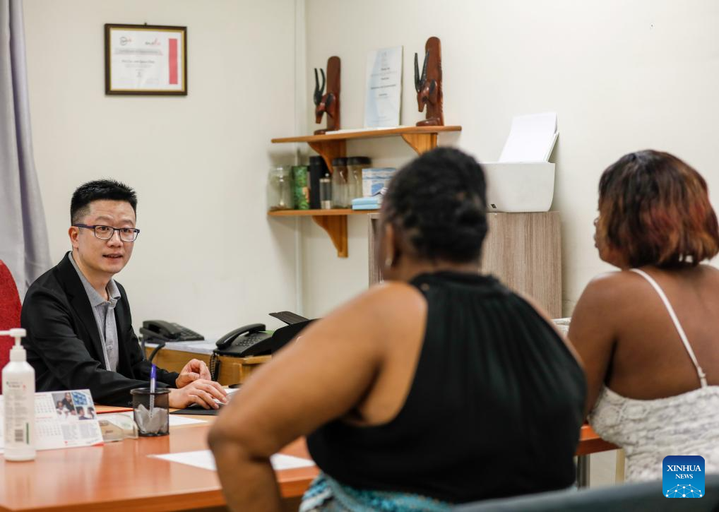 Taylor Zhang talks to patients in Gaborone, Botswana, Sept. 11, 2023. It is 9 o'clock on a Monday morning, and people have been lining up at the waiting room of Taylor Zhang's obstetrics & gynecology clinic of a private hospital in Gaborone, the capital of Botswana.