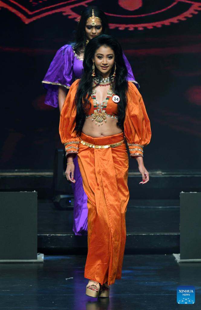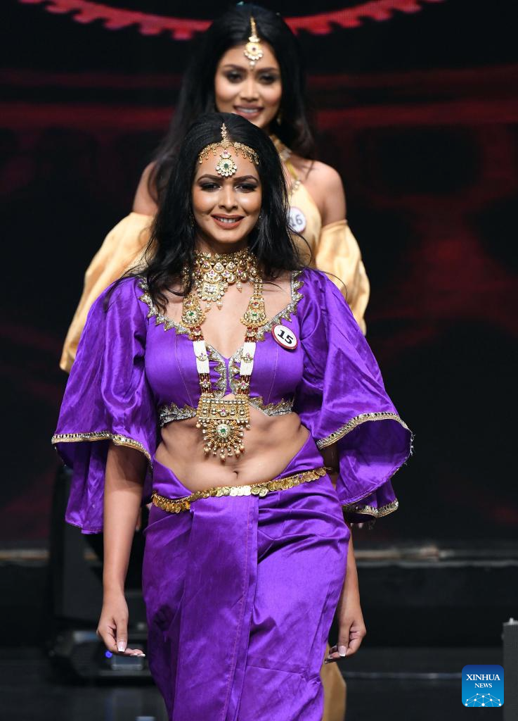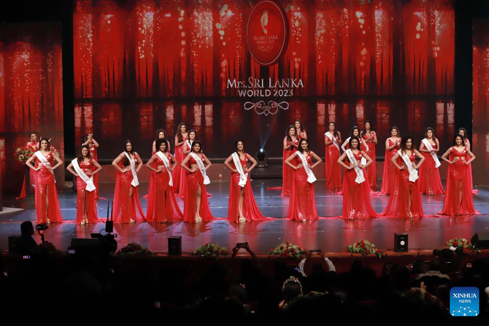 Contestants participate in the grand finale of Mrs. Sri Lanka World pageant in Colombo, Sri Lanka, on Sept. 13, 2023. (Photo by Ajith Perera/Xinhua)