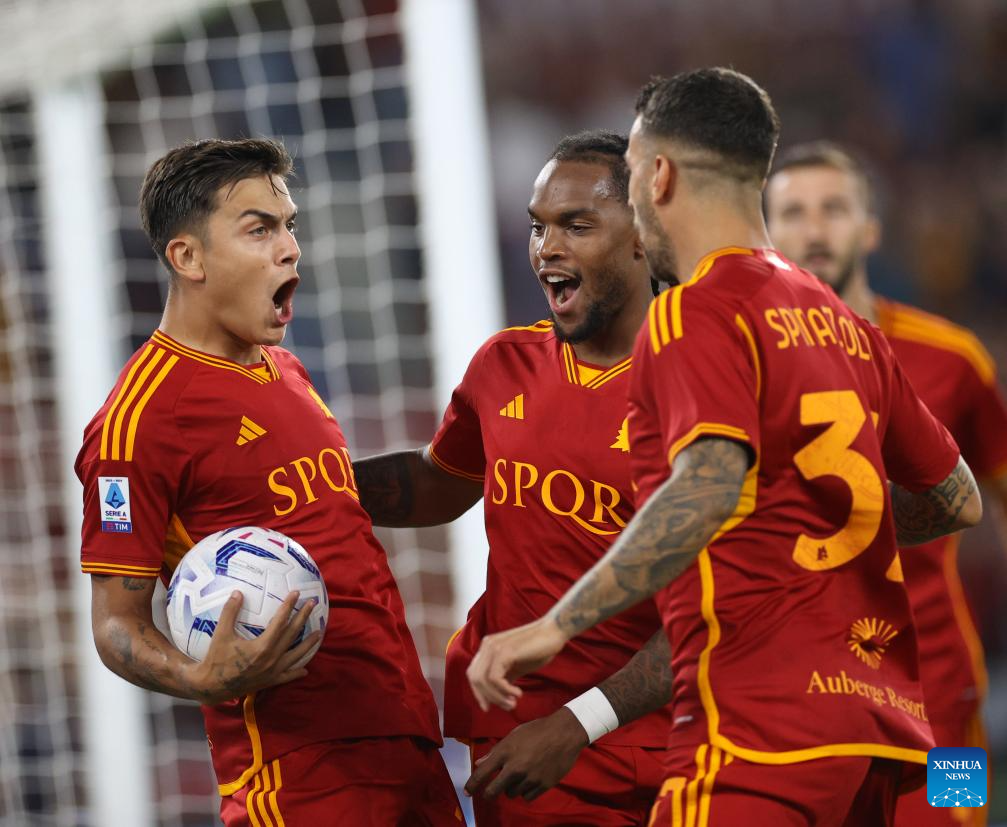 Roma's Paulo Dybala (1st L) celebrates his goal during a Serie A football match between Roma and Empoli in Rome, Italy, on Sept.17, 2023. (Photo by Alberto Lingria/Xinhua)