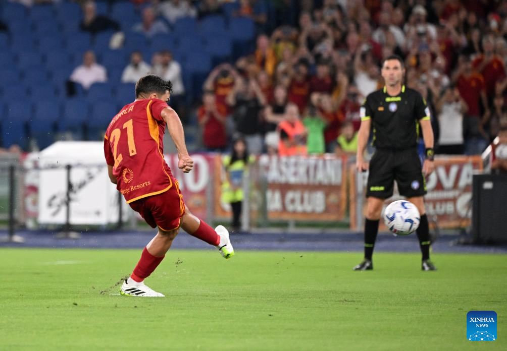 Roma's Paulo Dybala scores the penalty kick during a Serie A football match between Roma and Empoli in Rome, Italy, on Sept.17, 2023. (Photo by Alberto Lingria/Xinhua)