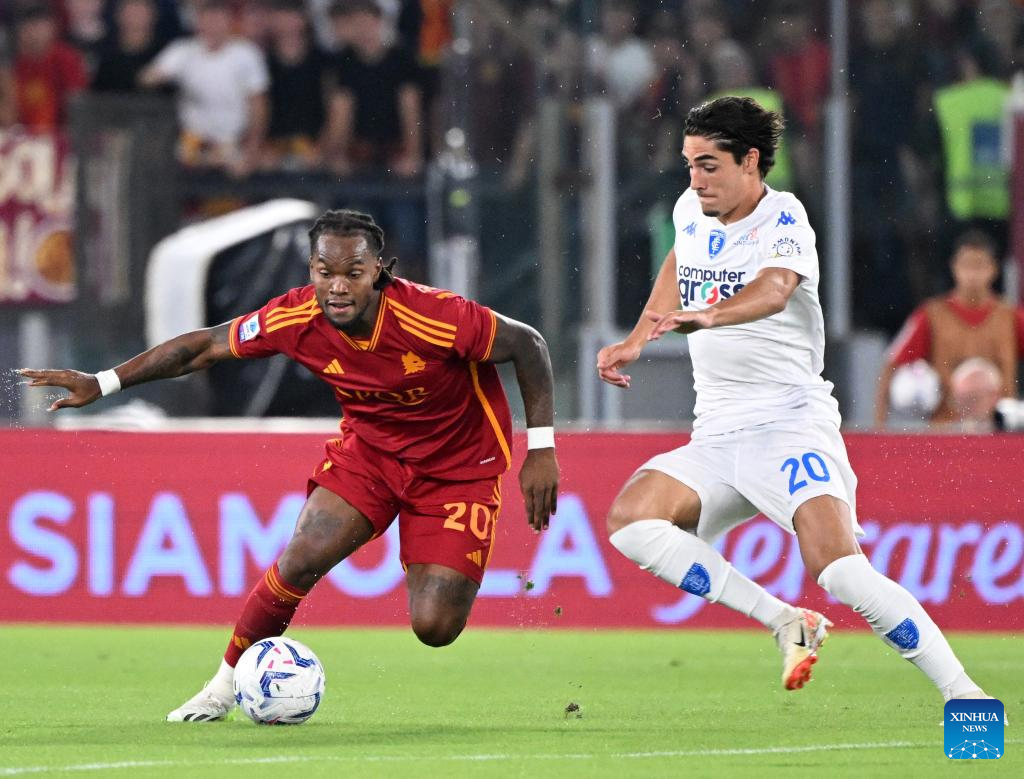 Roma's Renato Sanchez (L) vies with Empoli's Matteo Cancellieri during a Serie A football match between Roma and Empoli in Rome, Italy, on Sept.17, 2023. (Photo by Alberto Lingria/Xinhua)