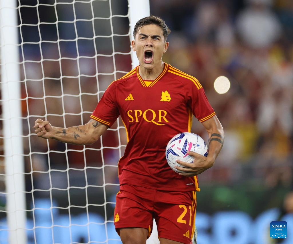 Roma's Paulo Dybala celebrates his goal during a Serie A football match between Roma and Empoli in Rome, Italy, on Sept.17, 2023. (Photo by Alberto Lingria/Xinhua)