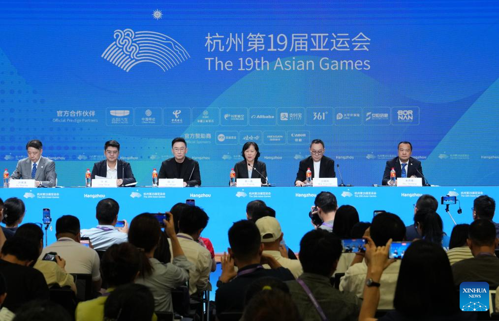 The photo taken on Sept. 21, 2023 shows the Press Conference on Preparations for the Hangzhou Asian Games Opening Ceremony in Hangzhou, east China's Zhejiang Province. (Xinhua/Li Yibo)