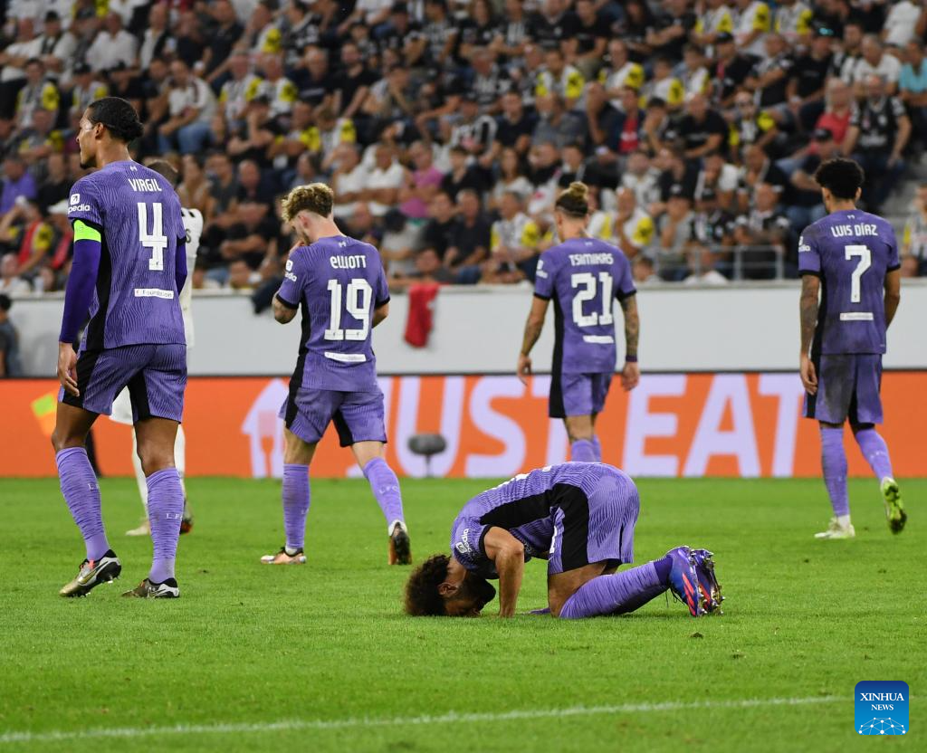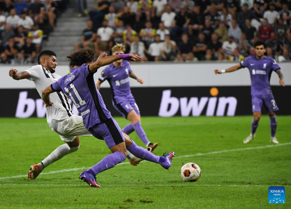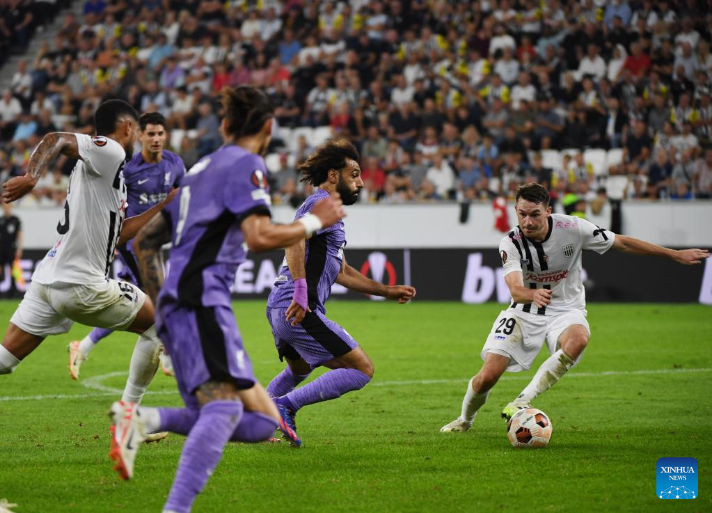 Mohamed Salah (2nd R) of Liverpool competes during the 2023/2024 UEFA Europa League Group E match between LASK Linz and Liverpool in Linz, Austria, on Sept. 21, 2023. (Xinhua/He Canling)