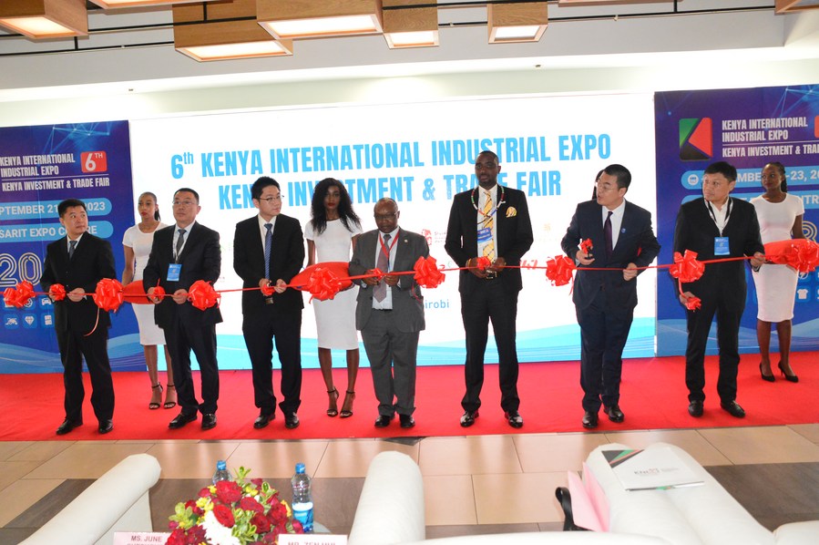 Officials cut a ribbon during the opening of the 6th Kenya International Industrial Expo in Nairobi, capital of Kenya, on Sept. 21, 2023. (Photo by Charles Onyango/Xinhua)