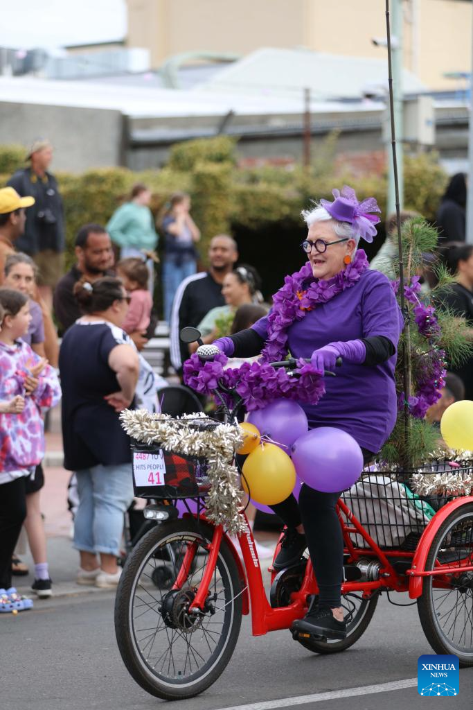 This photo taken on Sept. 23, 2023 shows the Hastings Blossom Parade in Hastings, New Zealand. (Photo by Meng Tao/Xinhua)
