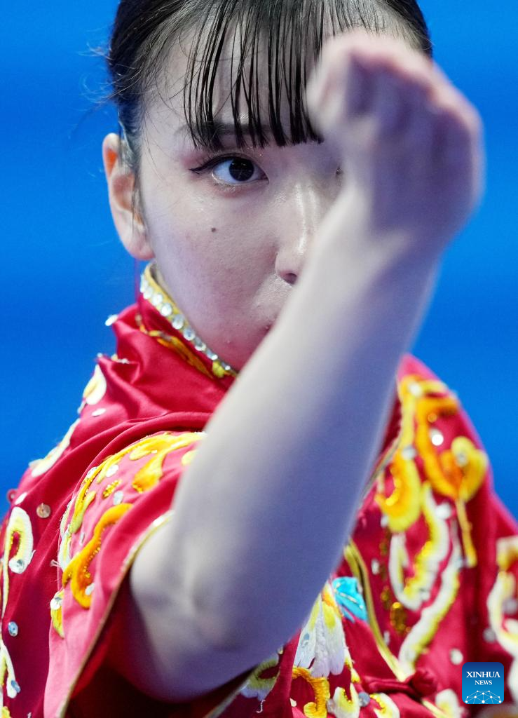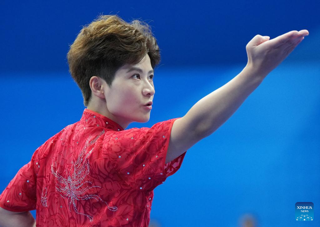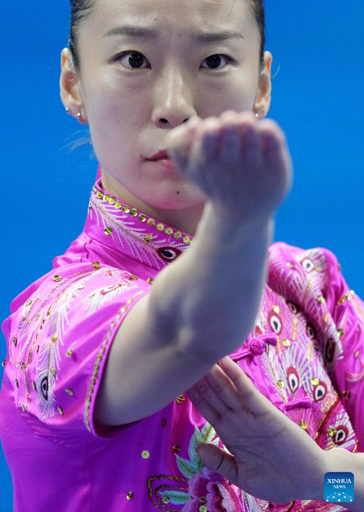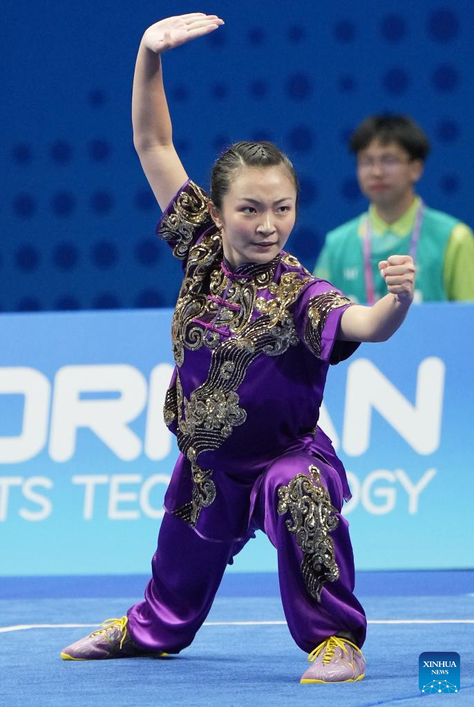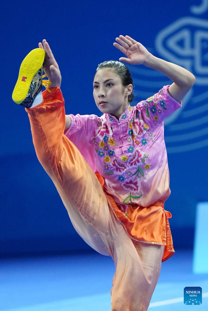 Nguyen Thi Hien of Vietnam competes during the Women's Changquan Final of Wushu at the 19th Asian Games in Hangzhou, east China's Zhejiang Province, Sept. 25, 2023. (Xinhua/Li Yibo)