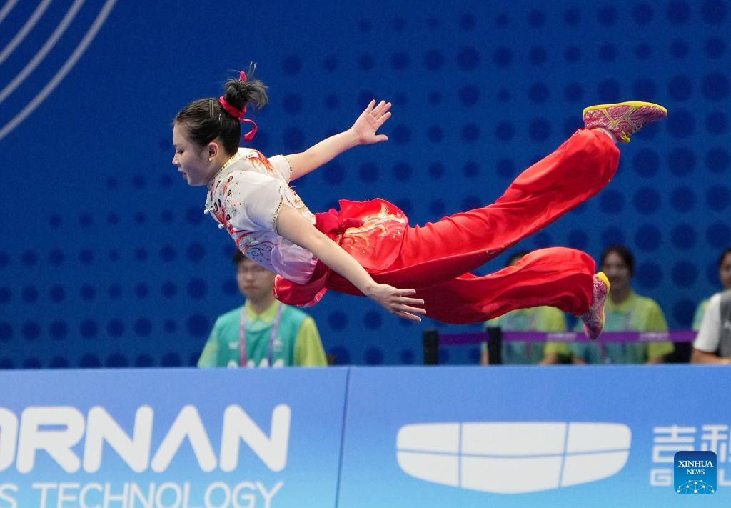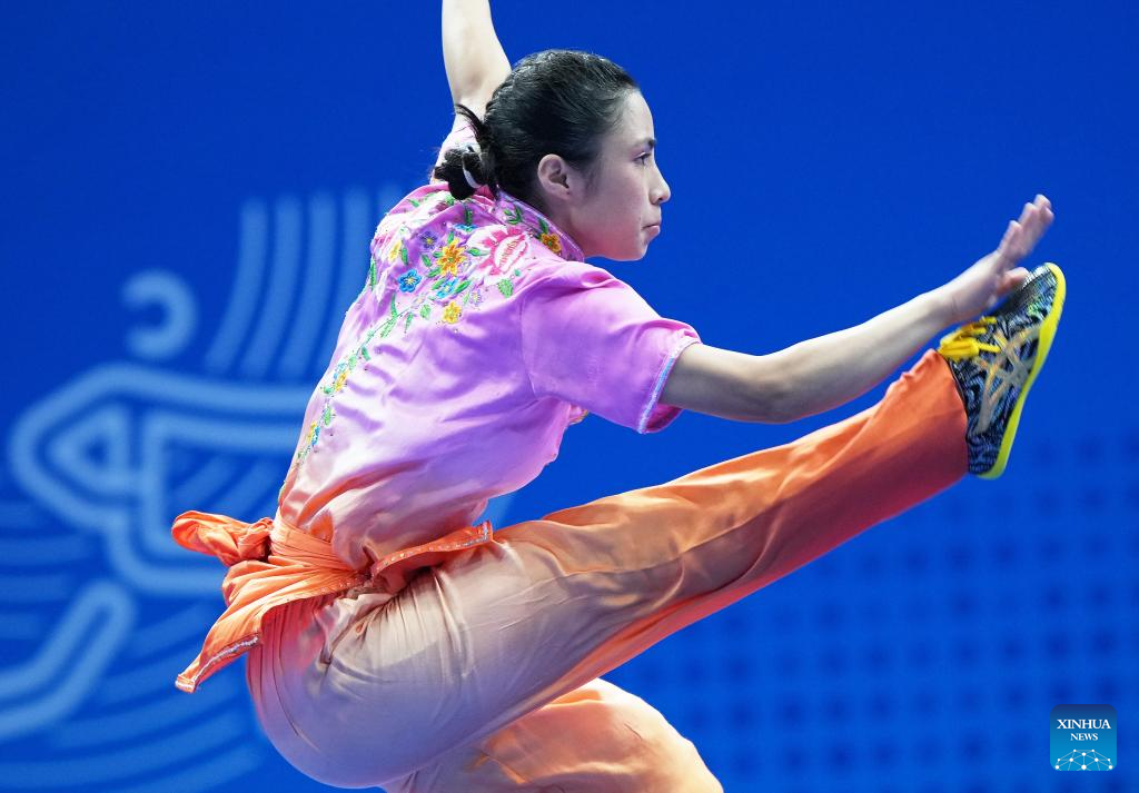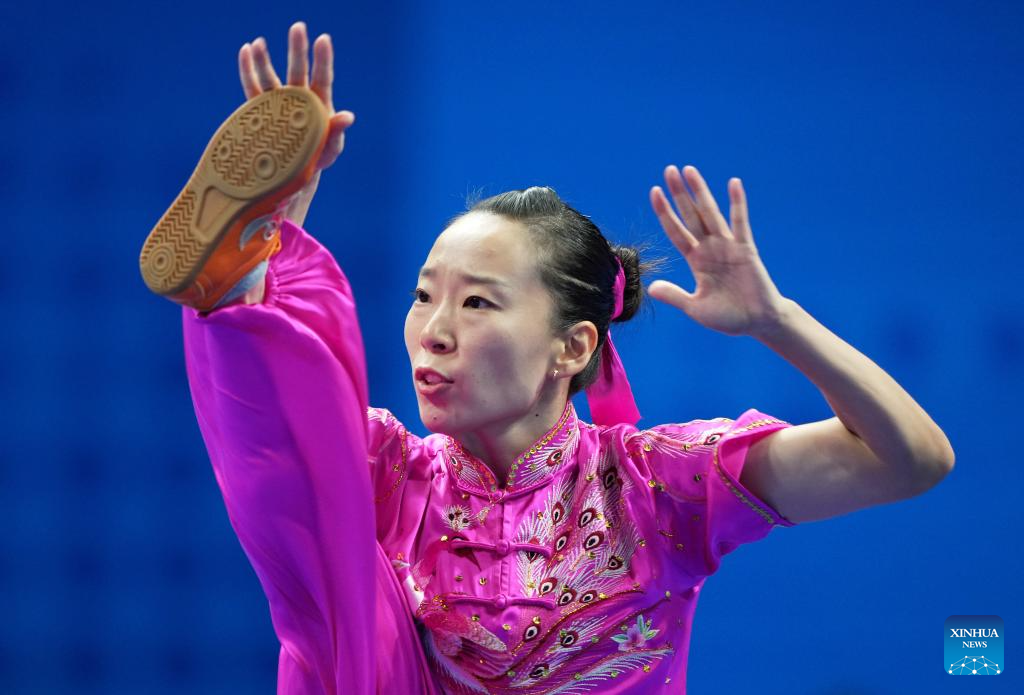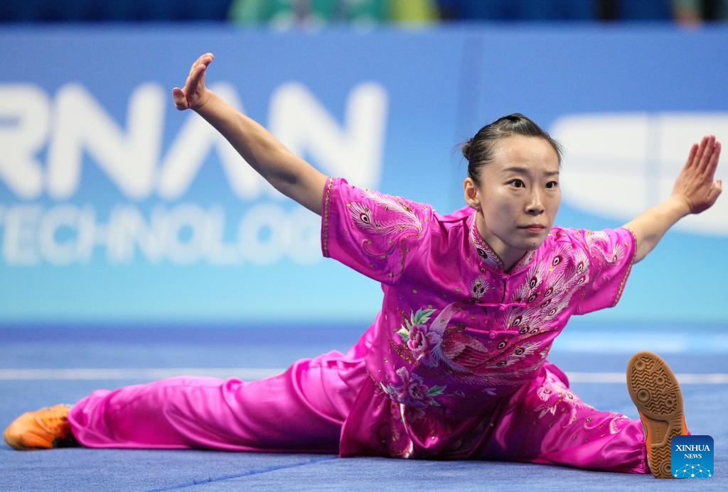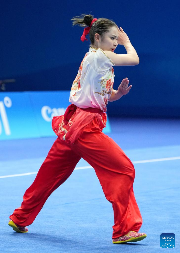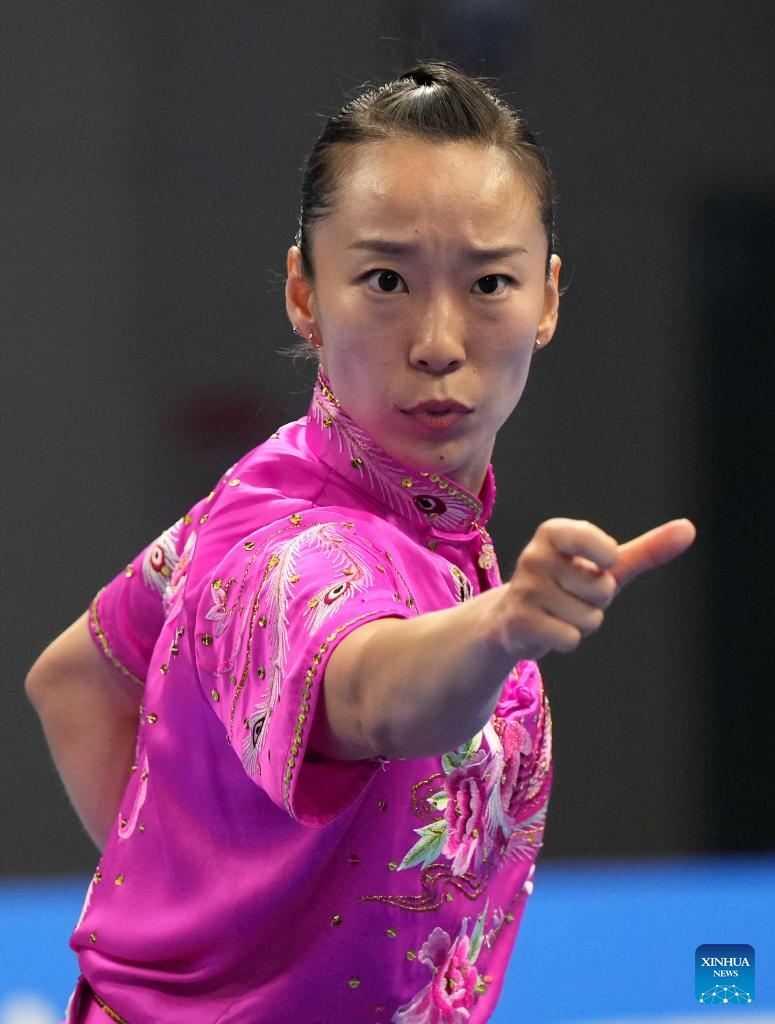 Nguyen Thi Hien of Vietnam competes during the Women's Changquan Final of Wushu at the 19th Asian Games in Hangzhou, east China's Zhejiang Province, Sept. 25, 2023. (Xinhua/Li Yibo)