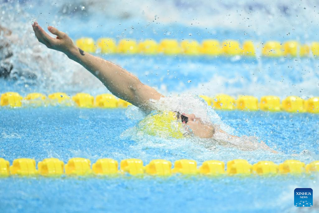 Xu Jiayu of China competes during the Men's 50m Backstroke Heat of Swimming at the 19th Asian Games in Hangzhou, east China's Zhejiang Province, Sept. 25, 2023. (Xinhua/Huang Zongzhi)