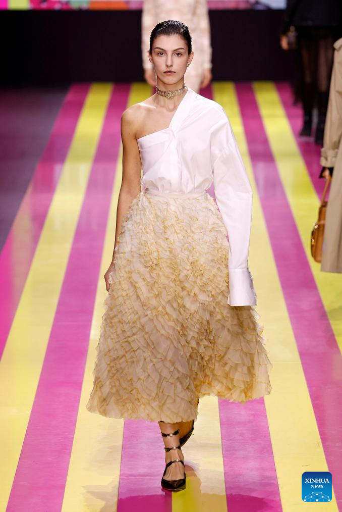 A model presents a creation of French fashion house Christian Dior's Spring/Summer 2024 ready-to-wear collections during Paris Fashion Week in Paris, France, on Sept. 26, 2023. (Photo by Piero Biasion/Xinhua)