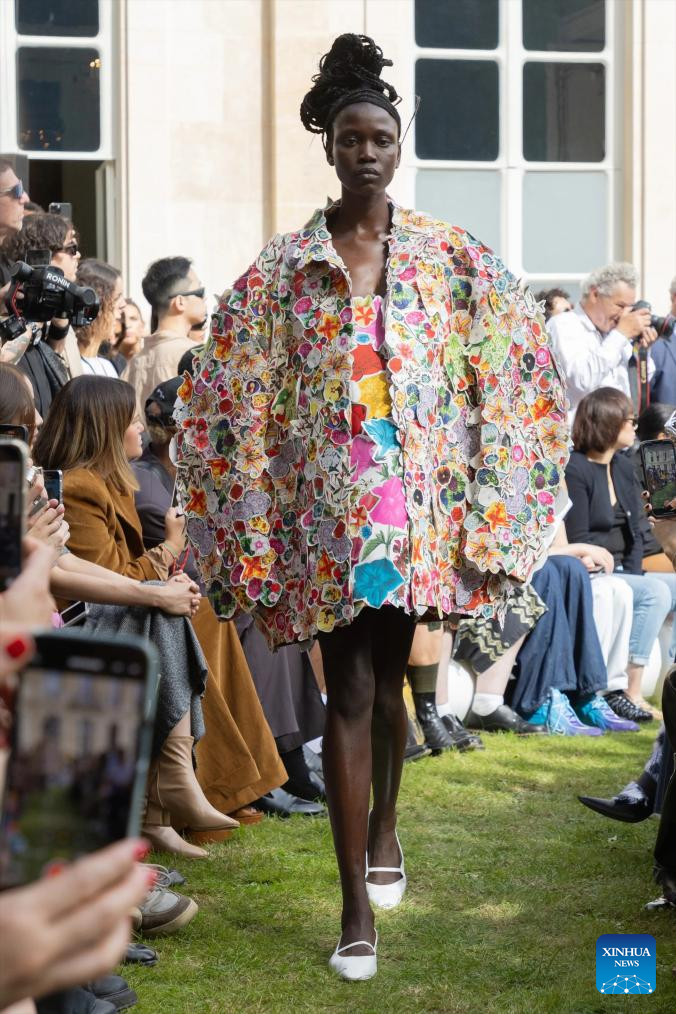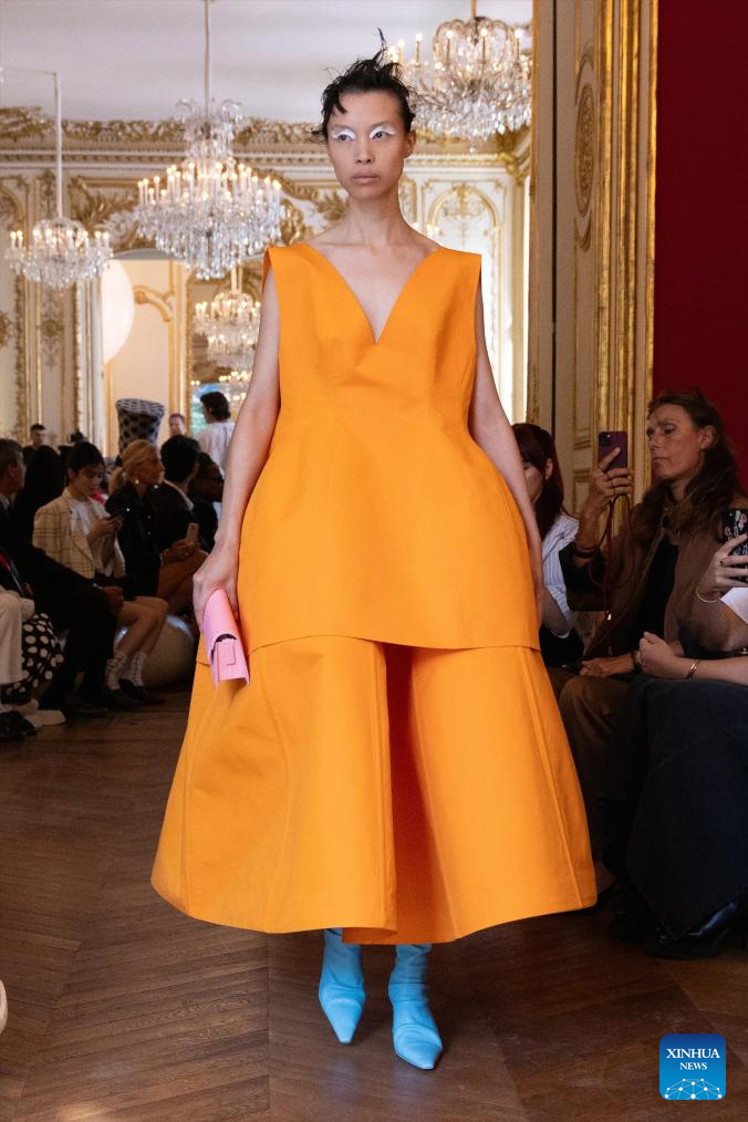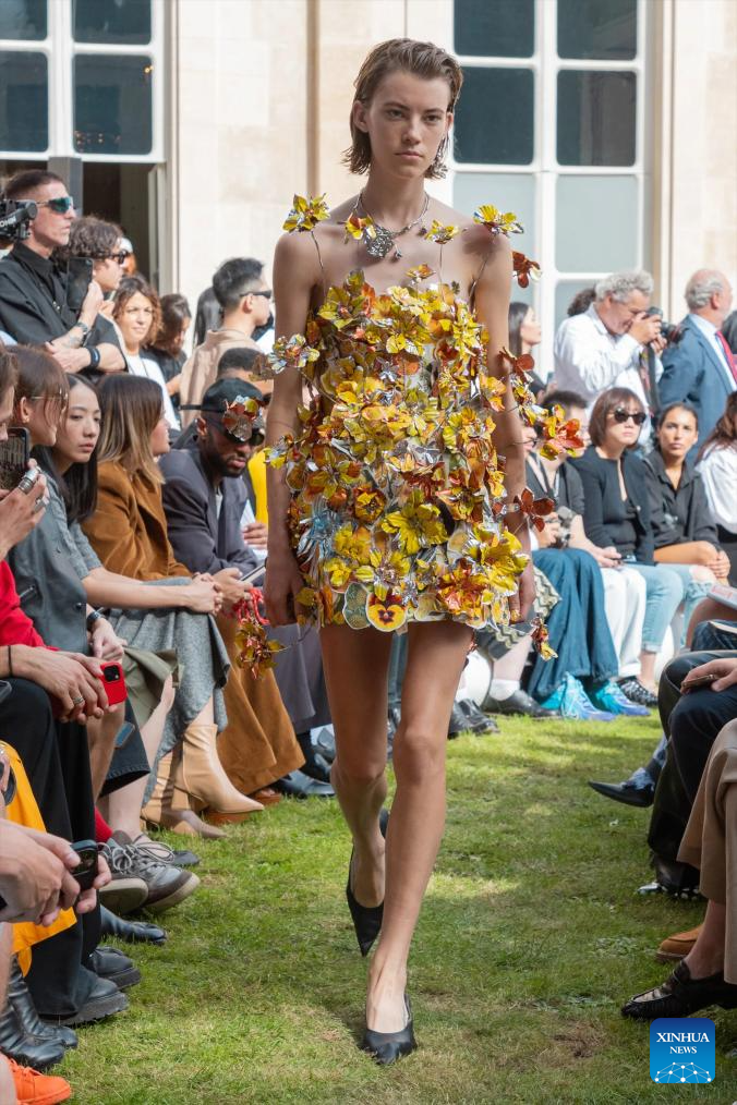 A model presents a creation by Marni as part of its Spring/Summer 2024 ready-to-wear collections during the Paris Fashion Week in Paris, France, on Sept. 27, 2023. (MeetEurope/Handout via Xinhua)