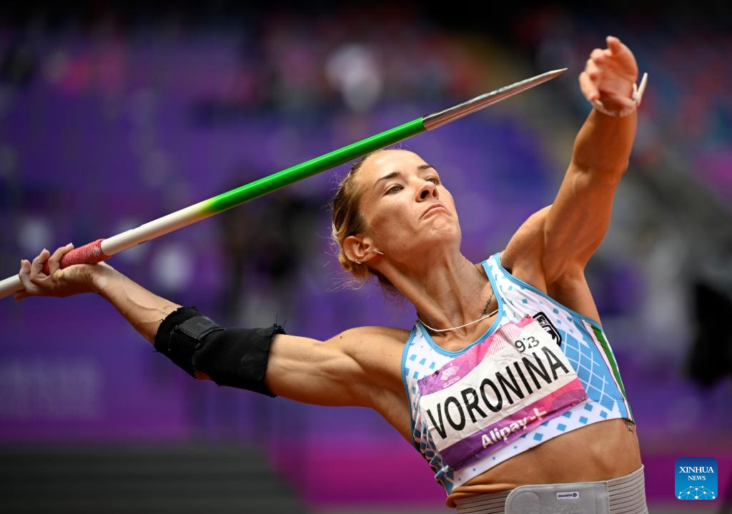 Ekaterina Voronina of Uzbekistan competes during the Women's Heptathlon Javelin Throw of Athletics at the 19th Asian Games in Hangzhou, east China's Zhejiang Province, Oct. 1, 2023. (Xinhua/Song Yanhua)