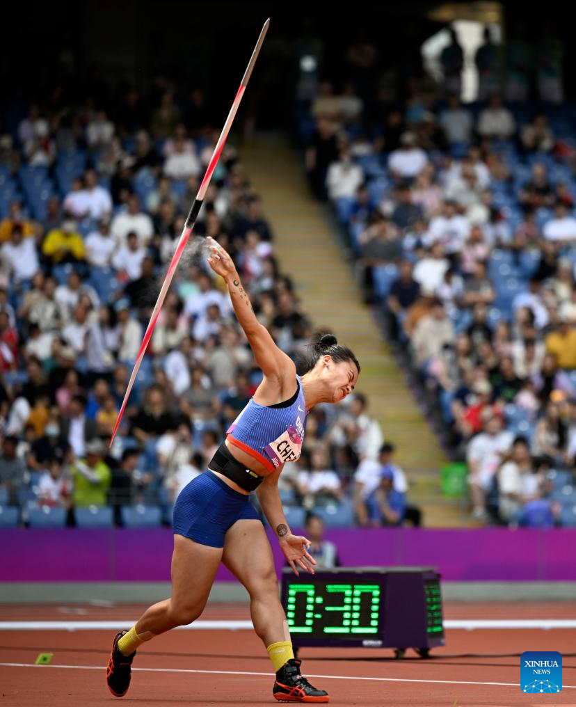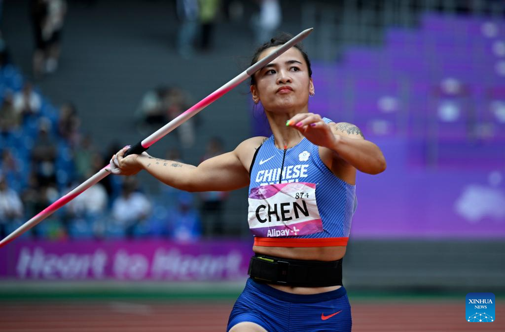 Chen Cai-Juan of Chinese Taipei competes during the Women's Heptathlon Javelin Throw of Athletics at the 19th Asian Games in Hangzhou, east China's Zhejiang Province, Oct. 1, 2023. (Xinhua/Song Yanhua)