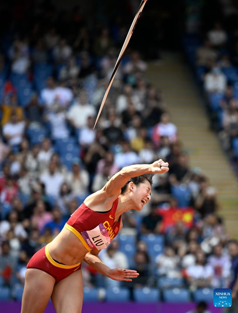Liu Jingyi of China competes during the Women's Heptathlon Javelin Throw of Athletics at the 19th Asian Games in Hangzhou, east China's Zhejiang Province, Oct. 1, 2023. (Xinhua/Song Yanhua)