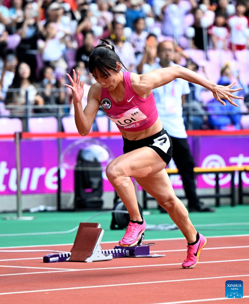 Loi Im Lan of China's Macao competes during the Women's 200m Heat of Athletics at the 19th Asian Games in Hangzhou, east China's Zhejiang Province, Oct. 1, 2023. (Xinhua/Song Yanhua)