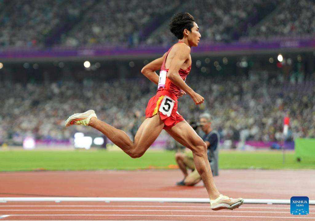 Liu Dezhu of China competes during the Men's 800m Final of Athletics at the 19th Asian Games in Hangzhou, east China's Zhejiang Province, Oct. 3, 2023. (Xinhua/Sun Fei)