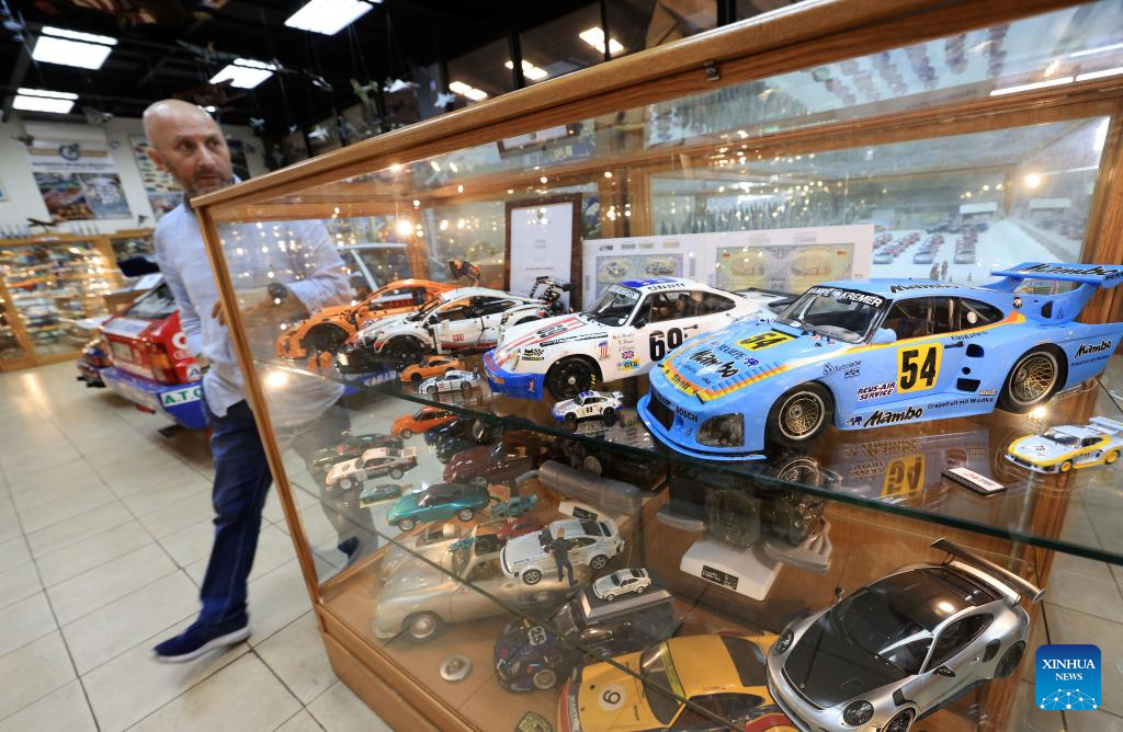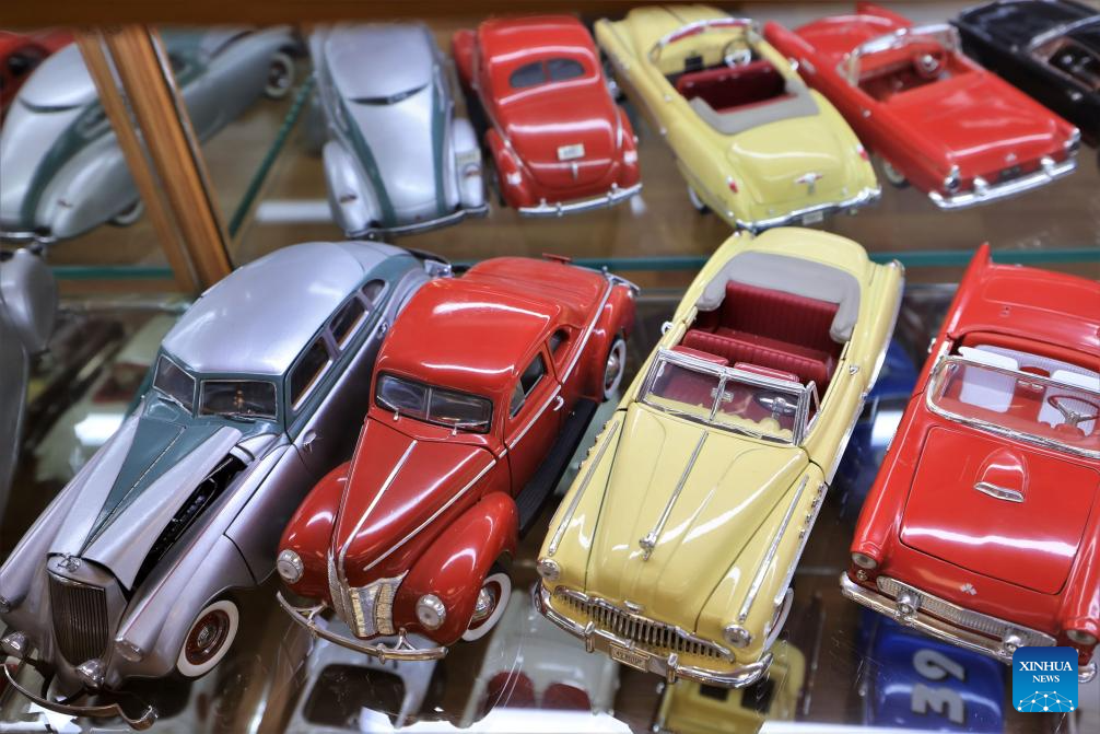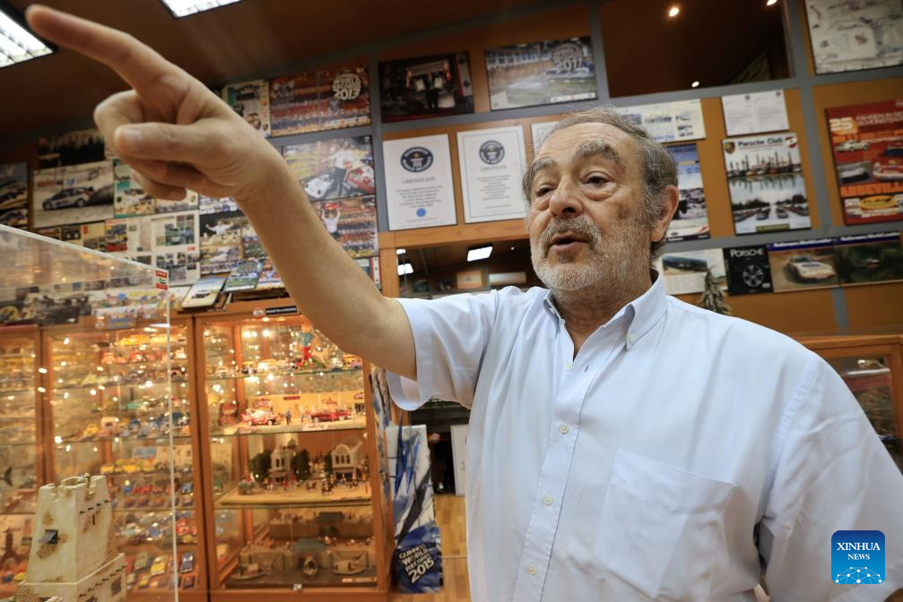 Nabil Karam, owner of the Billy Karam Museum, introduces his collections at the museum in Zouk Mosbeh, Lebanon, Oct. 3, 2023. Extending over 1,500 square meters with two floors, Billy Karam Museum displays thousands of mini sports and classic cars. (Xinhua/Liu Zongya)