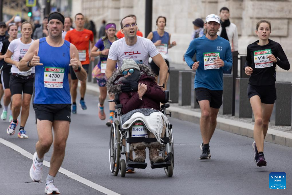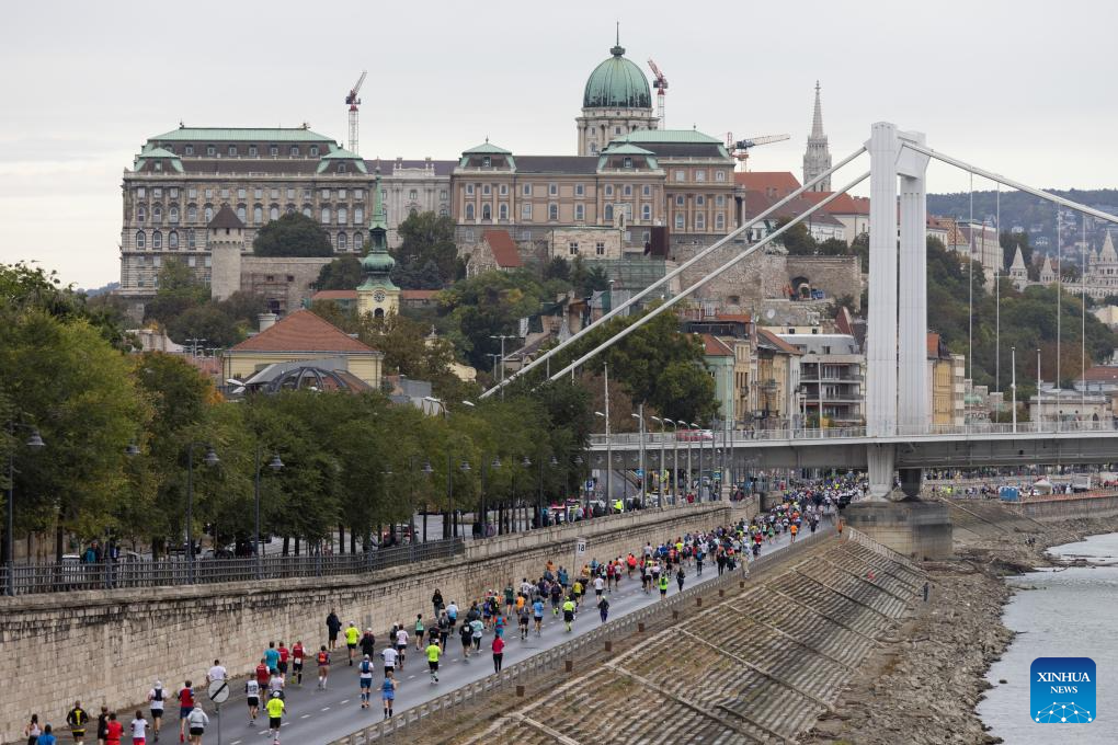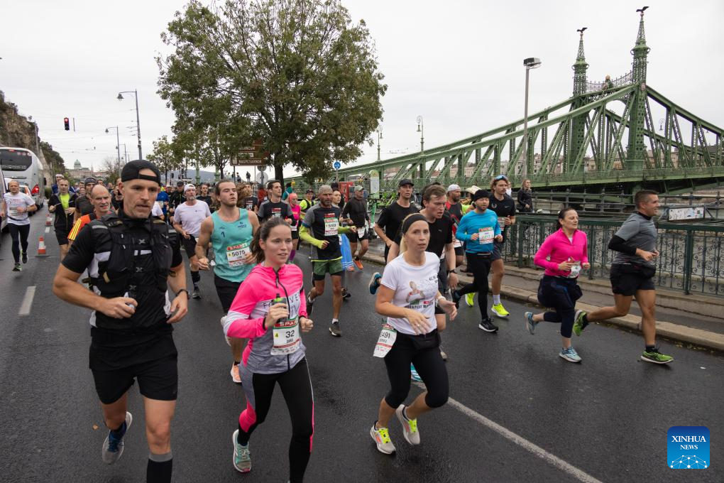 People participate in the Budapest Marathon in downtown Budapest, Hungary on Oct. 15, 2023. (Photo by Attila Volgyi/Xinhua)
