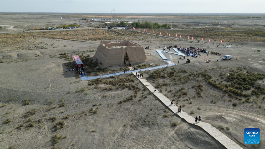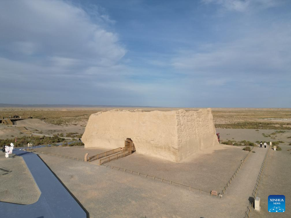 This aerial photo taken on Oct. 15, 2023 shows the site of Yumen Pass in Dunhuang, northwest China's Gansu Province. About 2,000 years ago, in the Western Han Dynasty (202 B.C.- A.D. 25), a Chinese envoy named Zhang Qian began his expedition to the Western Regions and opened a trade route that later became the Silk Road.