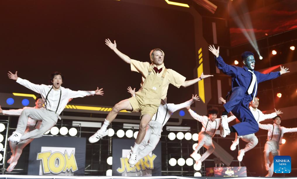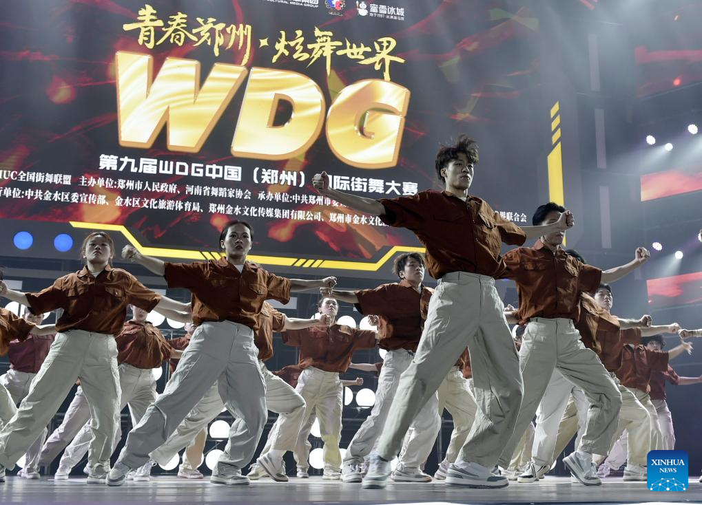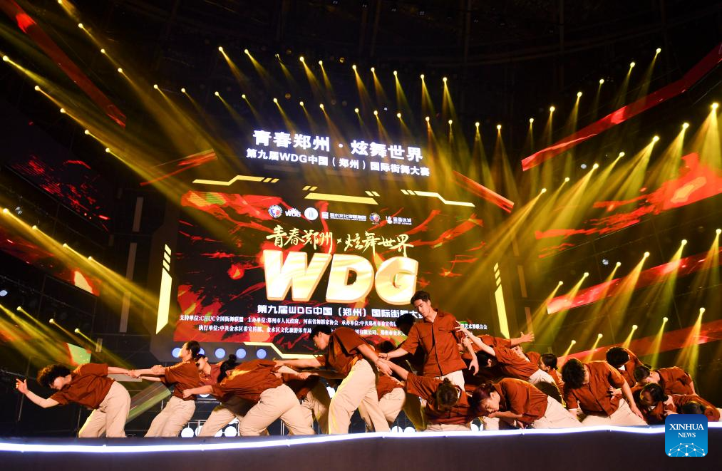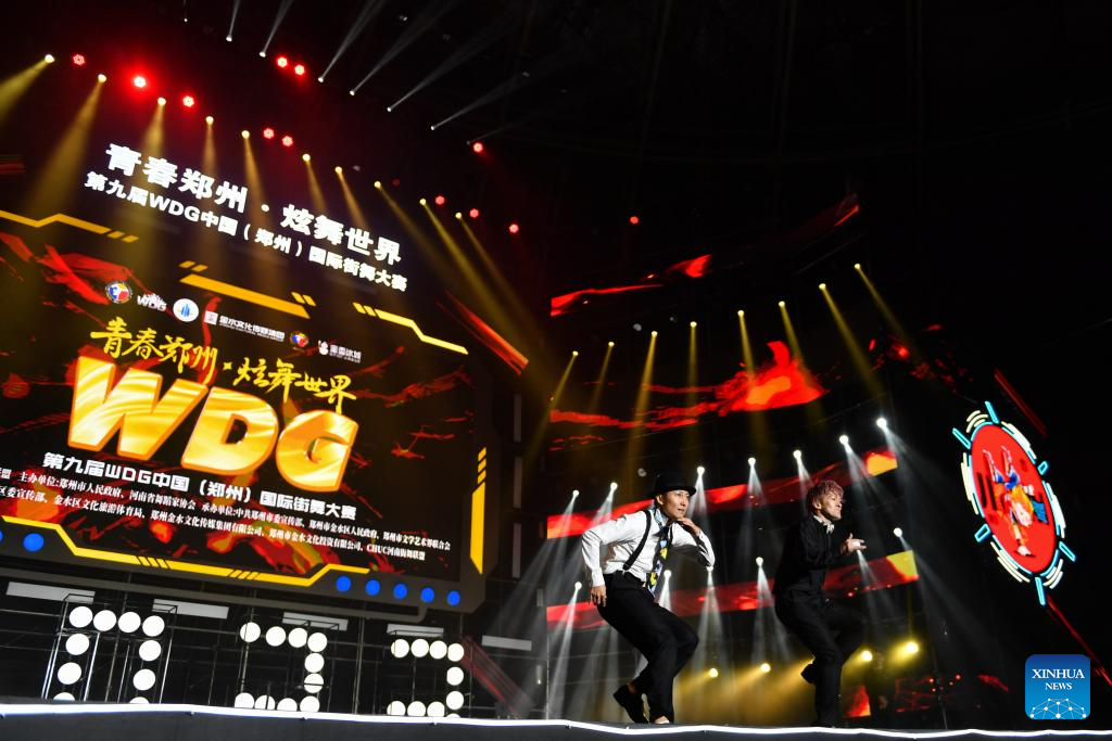 Dancers perform during the final of a street dance competition in Zhengzhou, central China's Henan Province, Oct. 16, 2023. The final of the ninth World Dance Games (WDG) China international street dance competition was held here Monday evening. Nearly 3,000 dancers from home and broad were engaged in the ninth WDG competition. (Xinhua/Wu Gang)