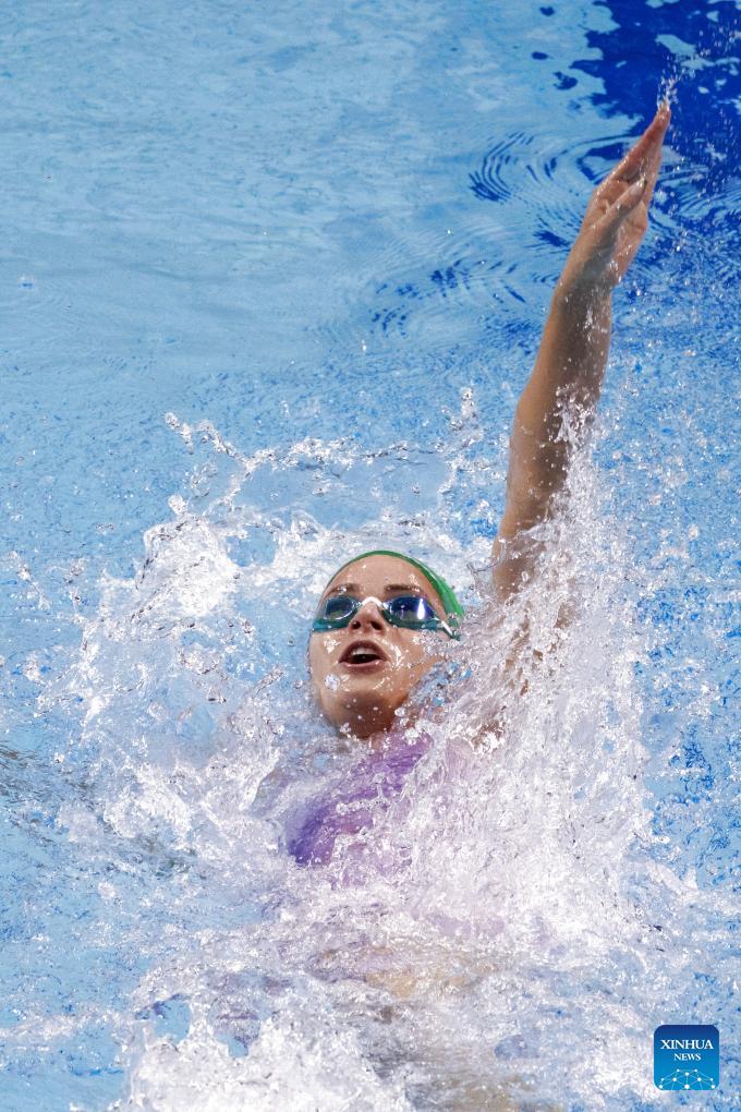 Kaylee McKeown of Australia competes during the women's 200m backstroke final at the World Aquatics Swimming World Cup 2023 in Budapest, Hungary, on Oct. 22, 2023. (Photo by Attila Volgyi/Xinhua)