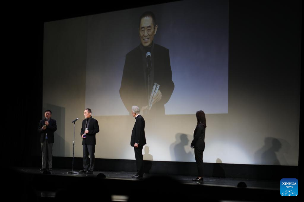 The Lifetime Achievement Award is presented to Chinese director Zhang Yimou at the opening ceremony of the 36th Tokyo International Film Festival (TIFF) in Tokyo, Japan, Oct. 23, 2023.(Xinhua/Zhong Ya)
