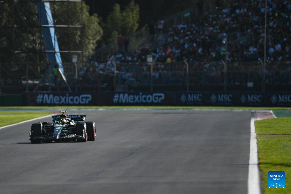 Mercedes' Lewis Hamilton of Britain competes during the qualifying session of the 2023 Formula One Mexico City Grand Prix at the Hermanos Rodriguez Circuit in Mexico City, Mexico on Oct. 28, 2023. (Xinhua/Xin Yuewei)
