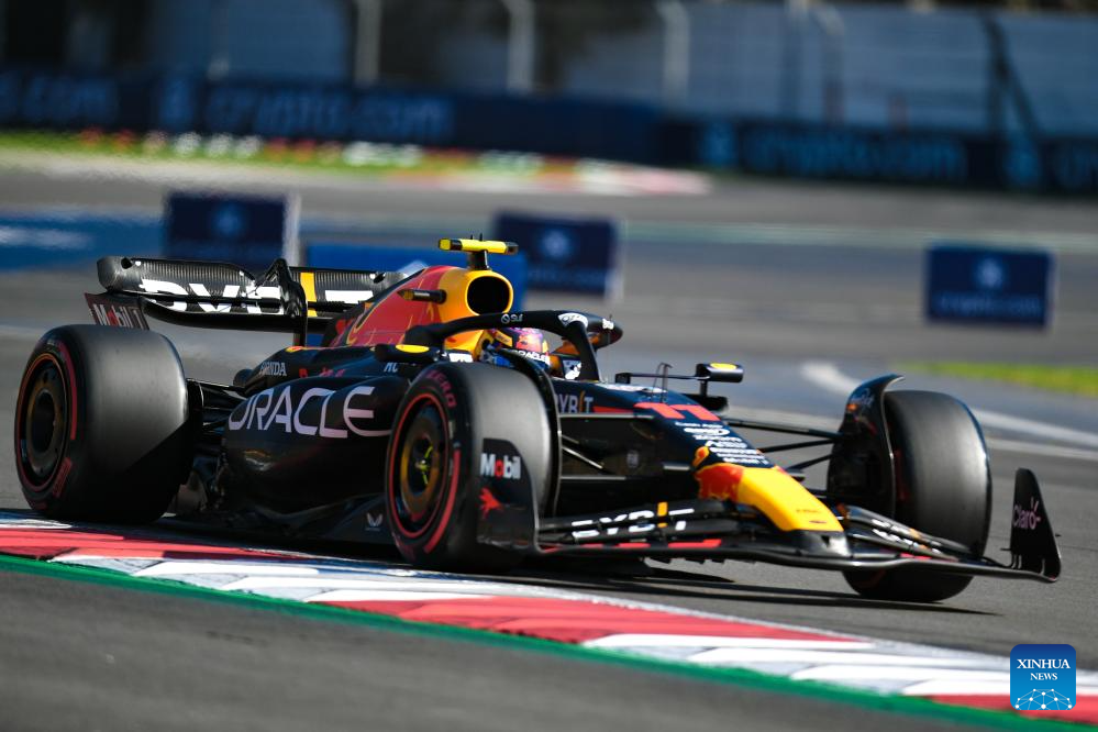 Red Bull's Sergio Perez of Mexico competes during the qualifying session of the 2023 Formula One Mexico City Grand Prix at the Hermanos Rodriguez Circuit in Mexico City, Mexico on Oct. 28, 2023. (Xinhua/Xin Yuewei)