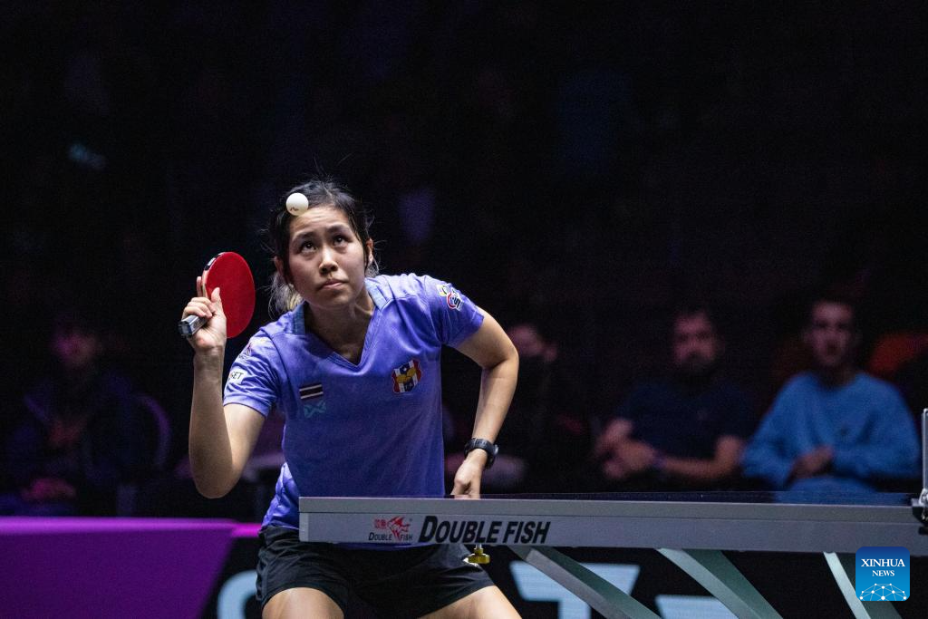 Suthasini Sawettabut of Thailand serves during the women's singles round of 32 match against Chen Meng of China at the WTT Champions Frankfurt 2023 in Frankfurt, Germany, Oct. 29, 2023. (Xinhua/Zhang Fan)