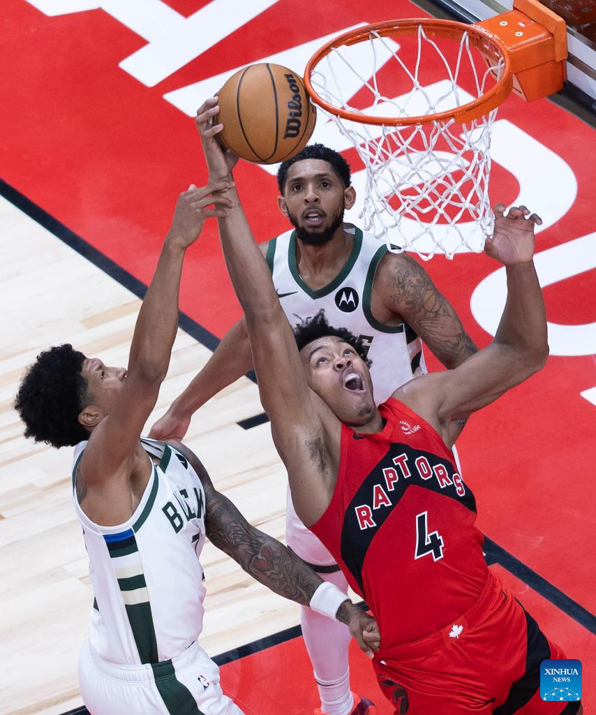 TORONTO, Nov. 1 (Xinhua) -- The Toronto Raptors dished out a season-best 35 assists to end their three-game losing streak in a 130-111 win over the Milwaukee Bucks on Wednesday.