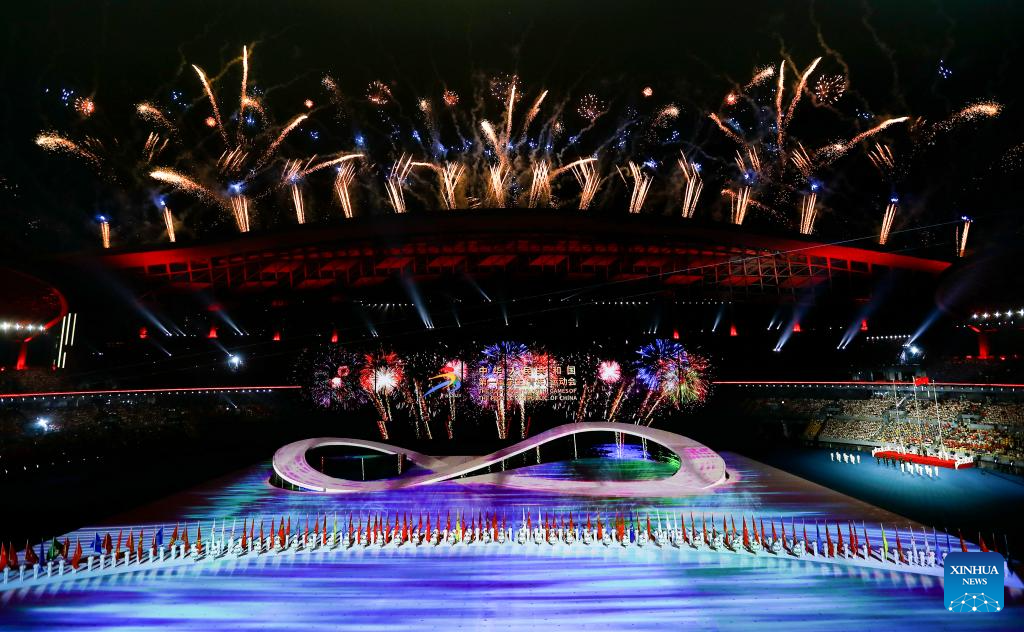 Fireworks light up the sky during the opening ceremony of the first Student (Youth) Games of China in Nanning of south China's Guangxi Zhuang Autonomous Region on Nov. 5, 2023. (Xinhua/Hu Xingyu)