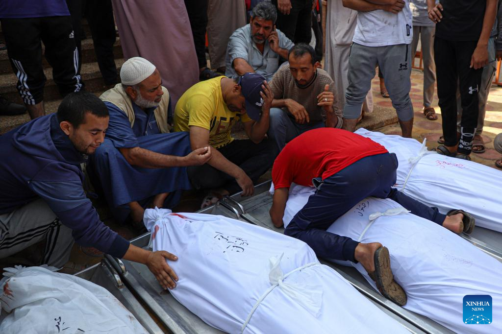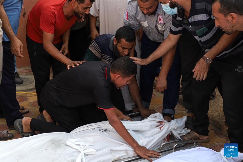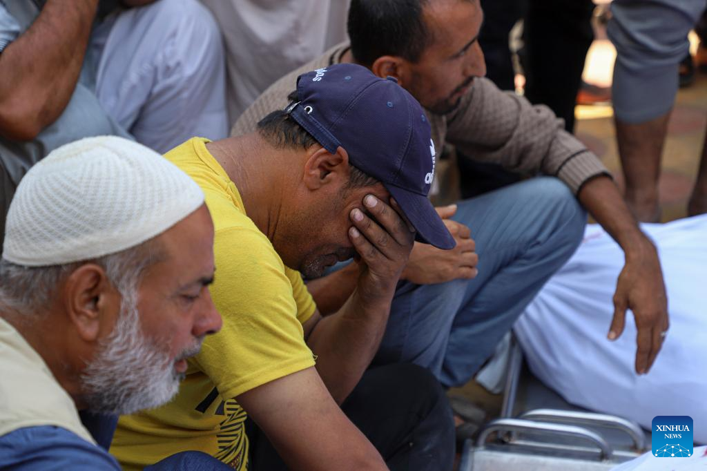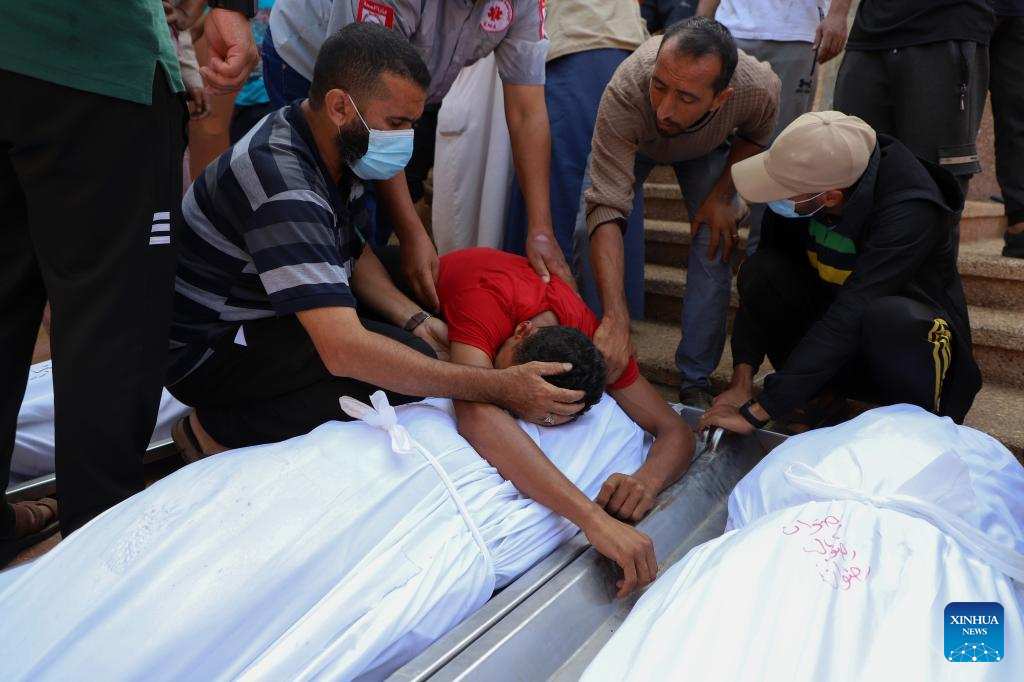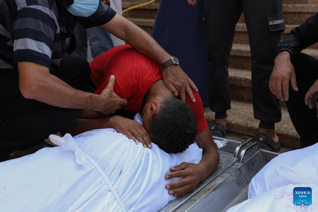 People mourn for victims killed in the Palestinian-Israeli conflict in the southern Gaza Strip city of Khan Younis, on Nov. 5, 2023. (Photo by Rizek Abdeljawad/Xinhua)