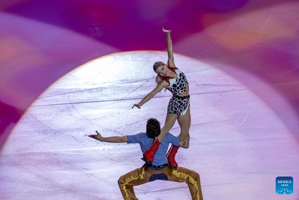 Deanna Stellato-Dudek (R) /Maxime Deschamps of Canada perform during the gala exhibition of the Cup of China ISU Grand Prix of Figure Skating 2023 in southwest China's Chongqing Municipality, Nov. 12, 2023. (Xinhua/Xu Yanan)