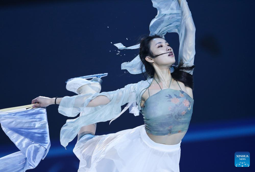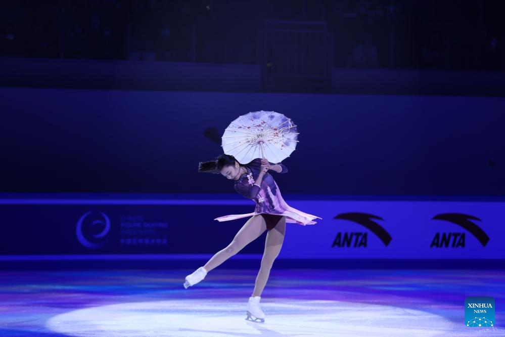 Chen Hongyi of China performs during the gala exhibition of the Cup of China ISU Grand Prix of Figure Skating 2023 in southwest China's Chongqing Municipality, Nov. 12, 2023. (Xinhua/Xu Yanan)