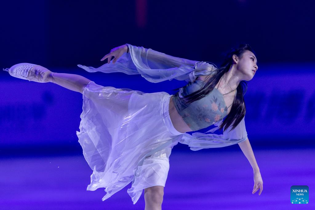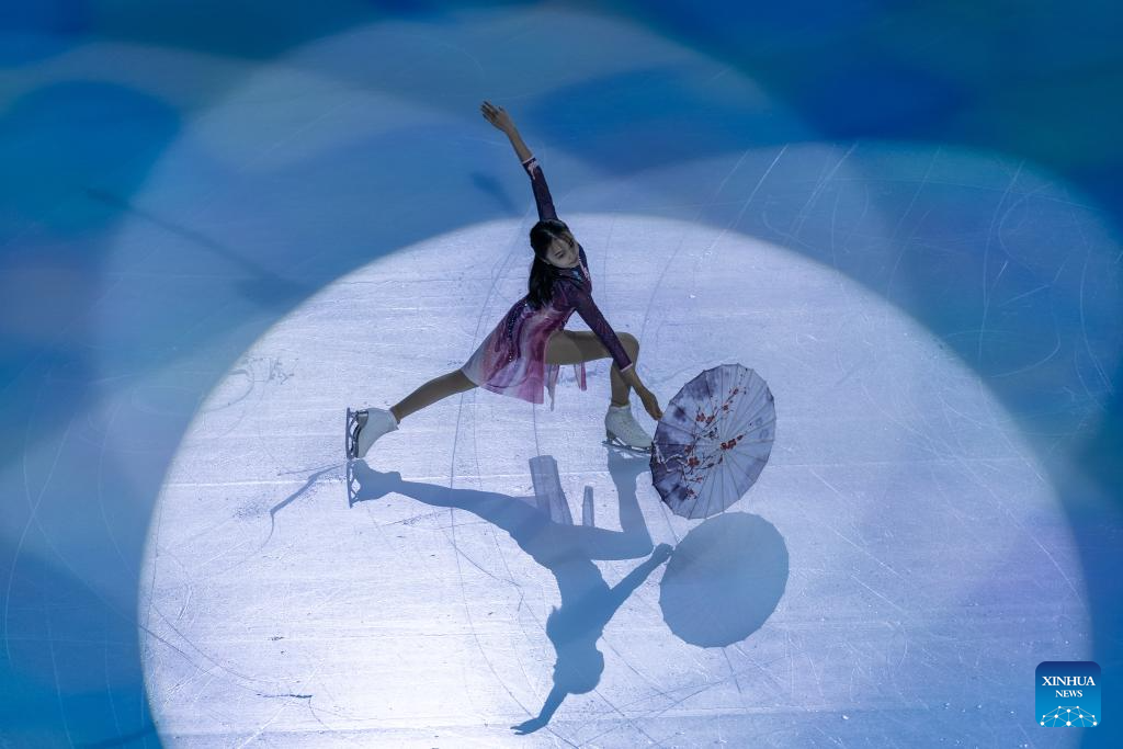 Chen Hongyi of China performs during the gala exhibition of the Cup of China ISU Grand Prix of Figure Skating 2023 in southwest China's Chongqing Municipality, Nov. 12, 2023. (Xinhua/Huang Wei)